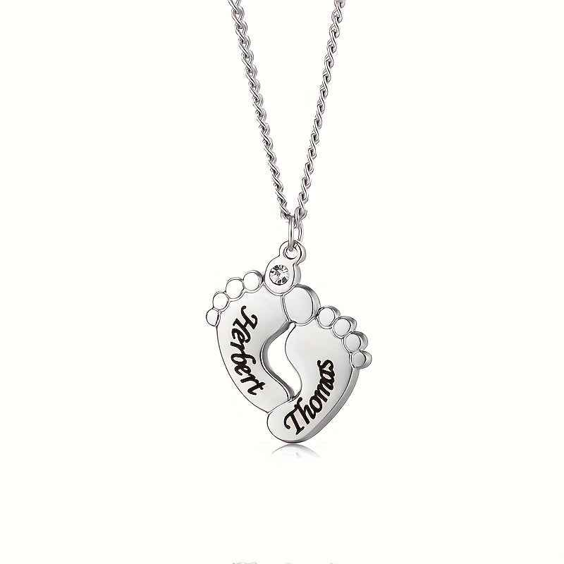Personalized stainless steel necklace with cubic zirconia ankle pendant. Custom engraving available for a unique touch. Add a personal touch to your accessories.