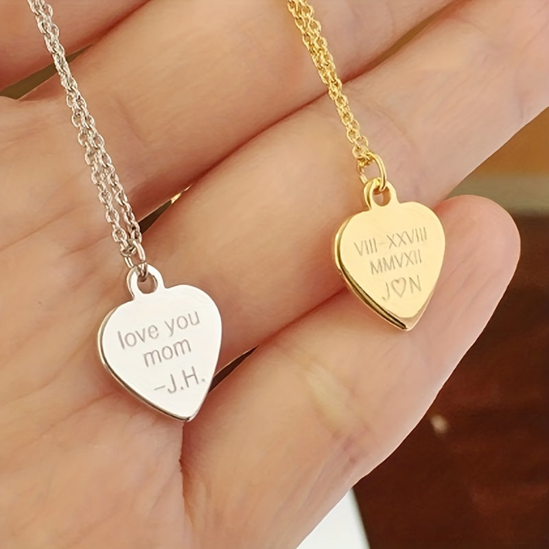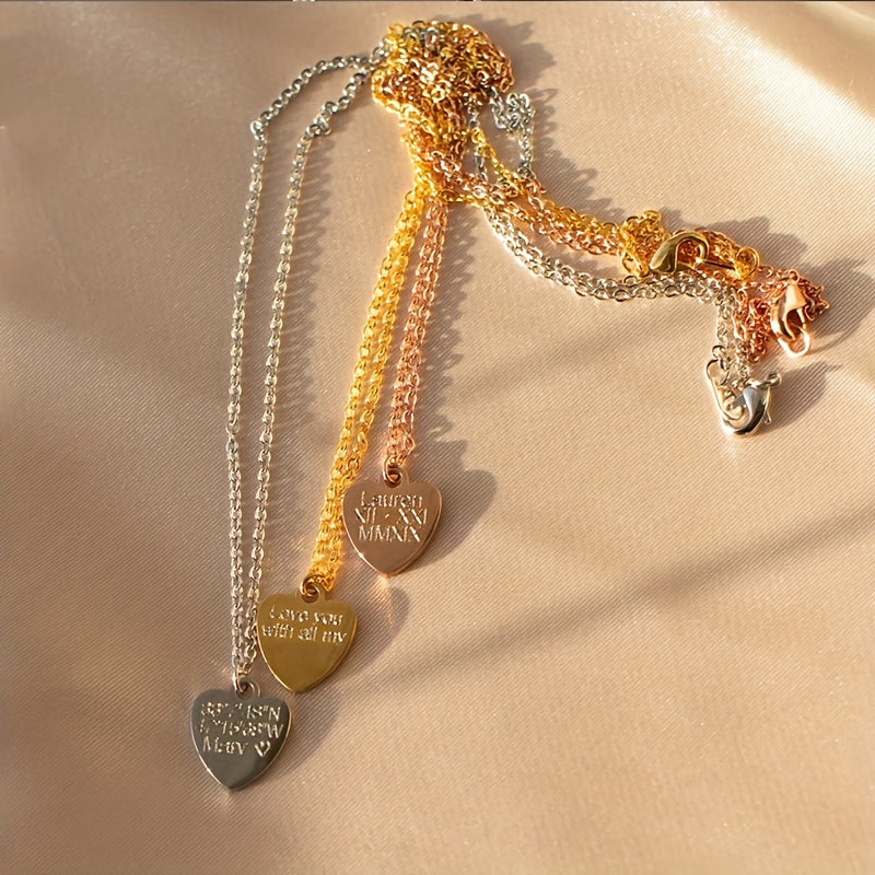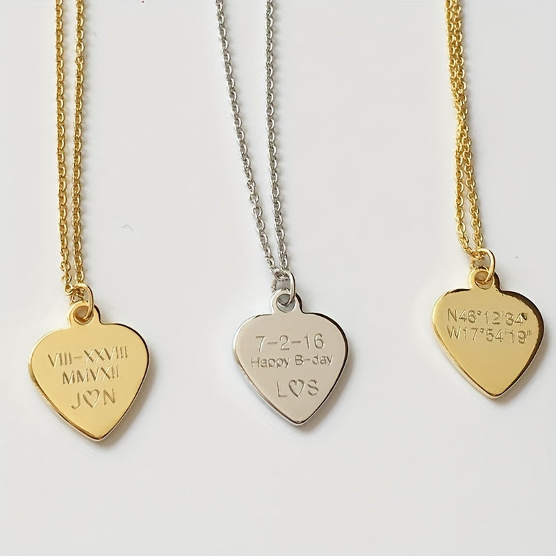 Personalized stainless steel necklace with heart pendant, ideal gift for men or women, or as a couple's accessory.