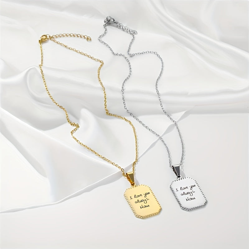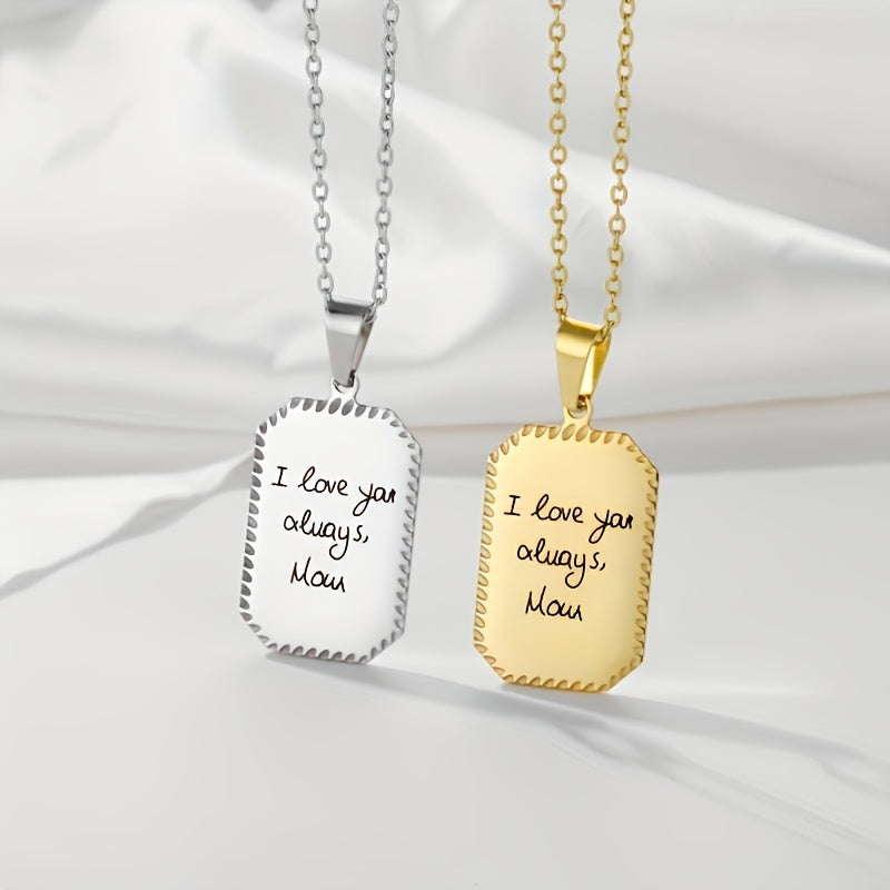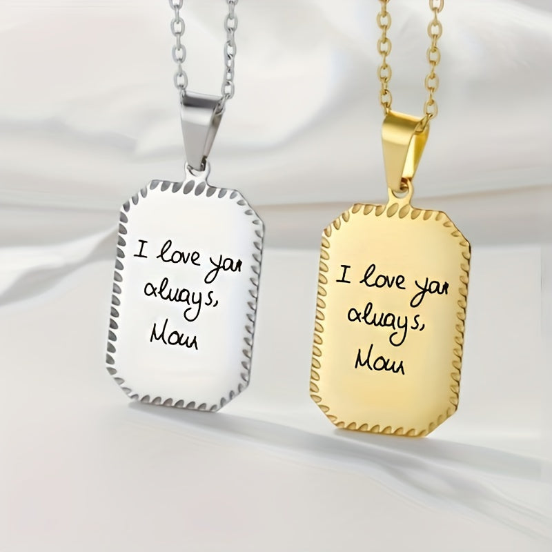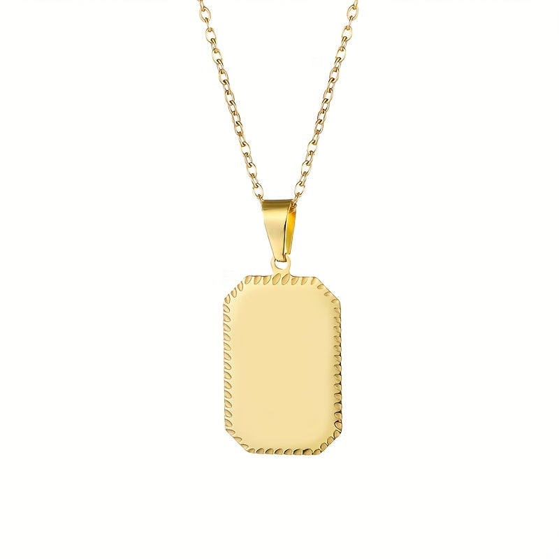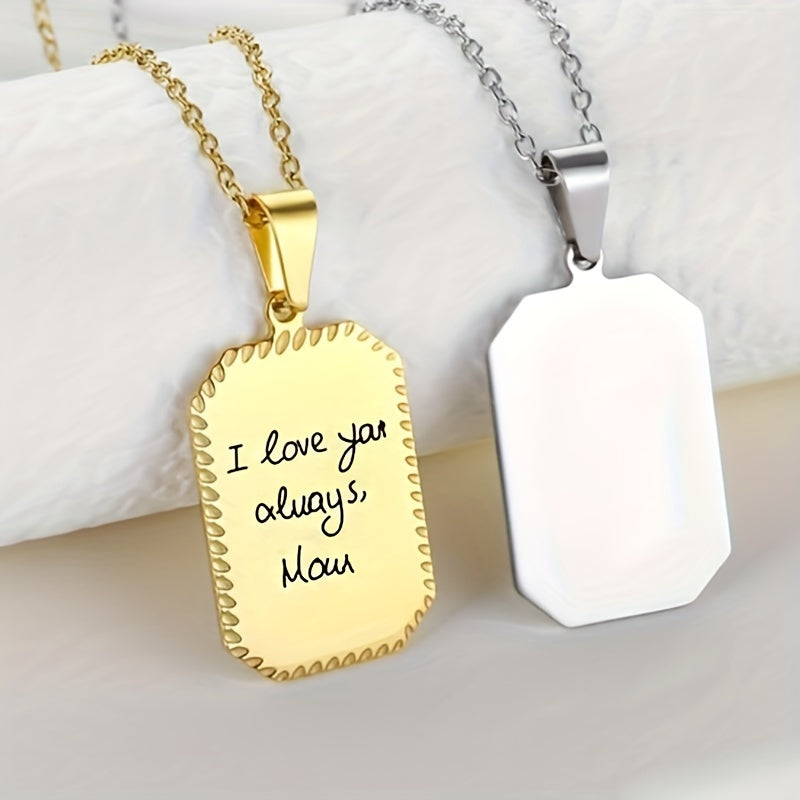 Personalized square pattern pendant necklace for men and women crafted with stainless steel. Customize with your own name or message.