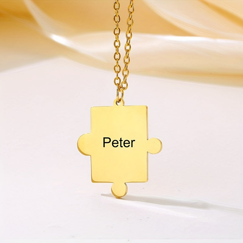 Custom Puzzle Necklace for Couples Stainless Steel Gift