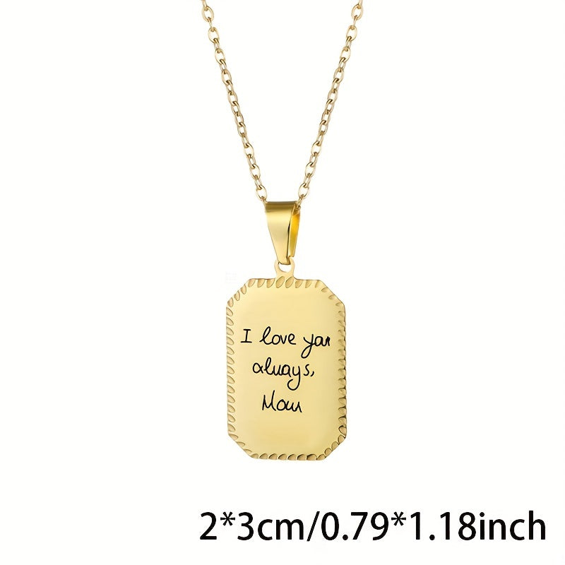 This personalized stainless steel necklace features a square pendant with a love heart design. Engrave your names, a special date, or a meaningful message to create a unique and thoughtful gift for your loved one.