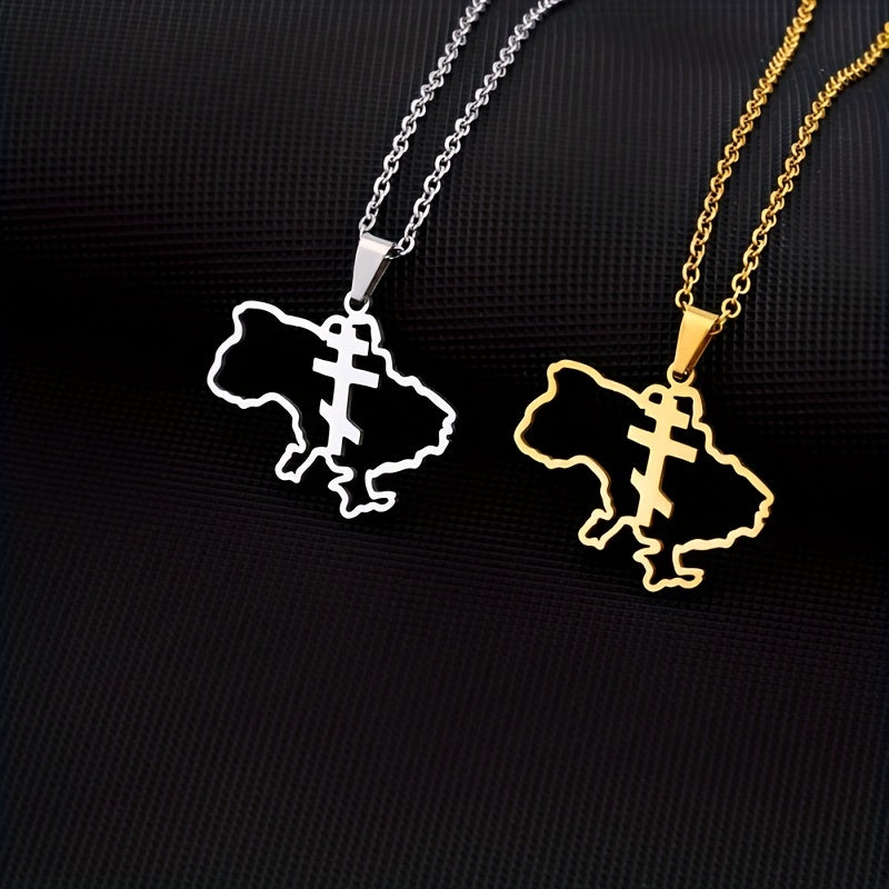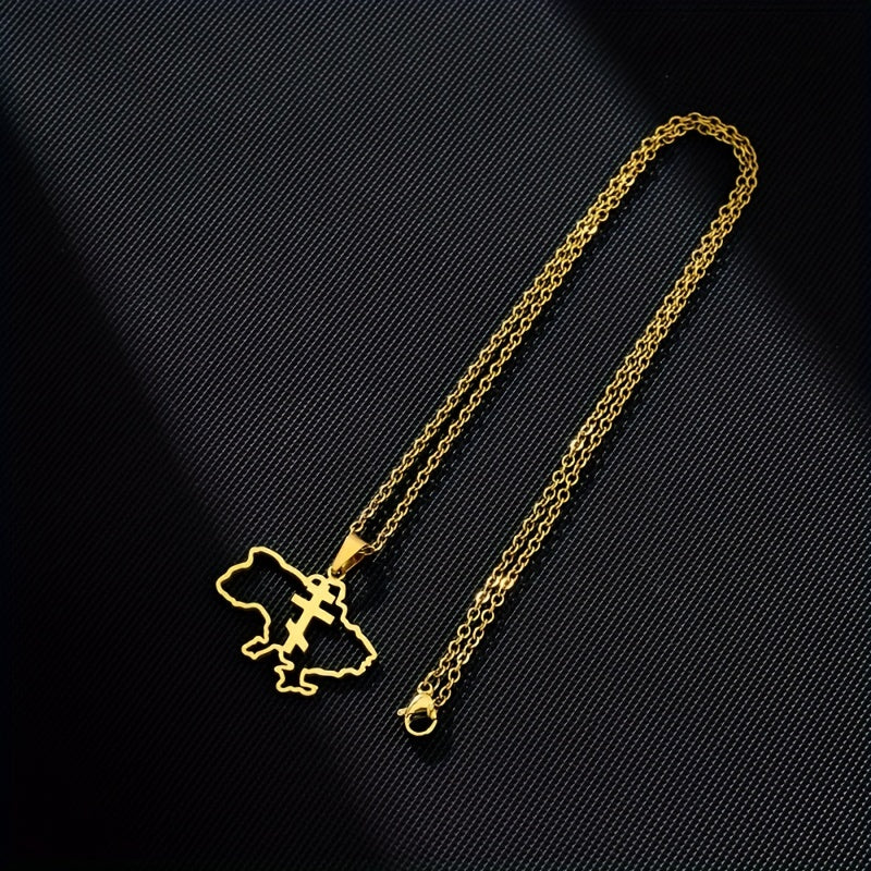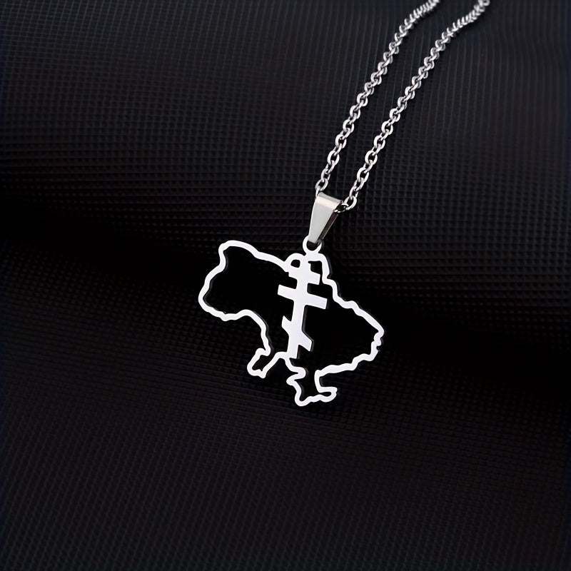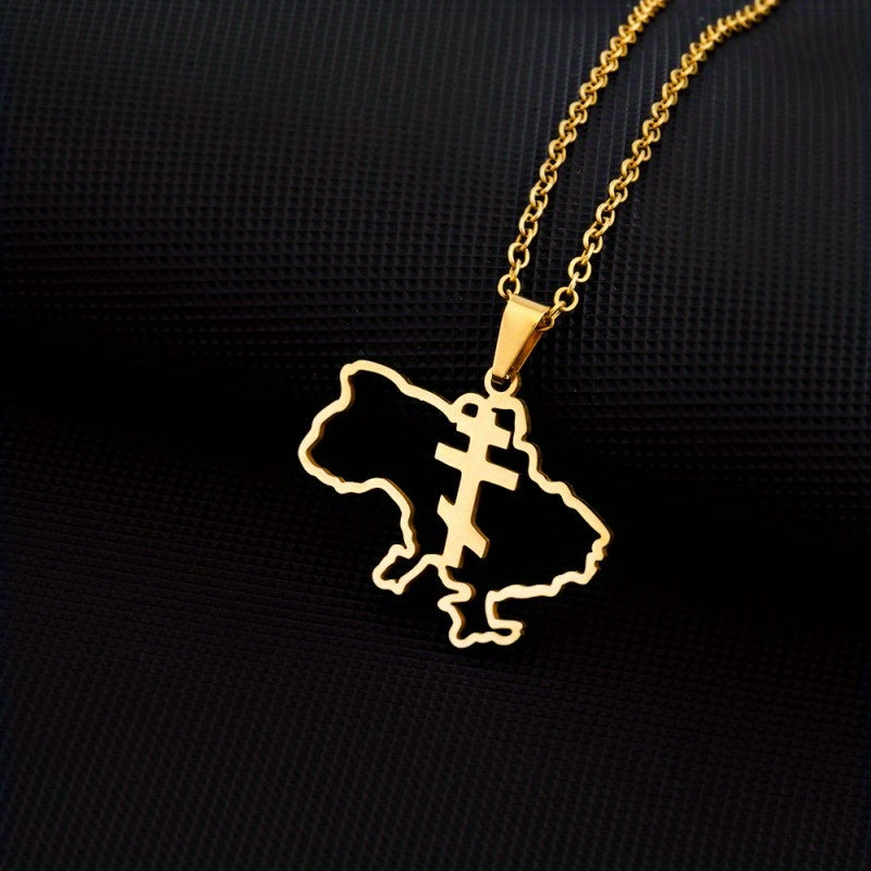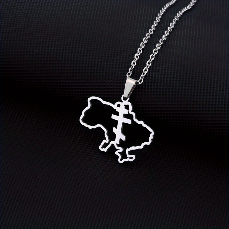 This stylish pendant necklace is a perfect gift for men, women, or couples. It features a cutout design of the Ukraine map, making it a unique and trendy accessory. Ideal for Christmas, birthdays, or any special occasion.