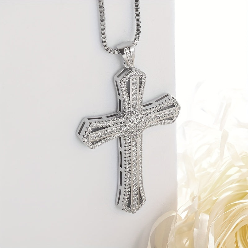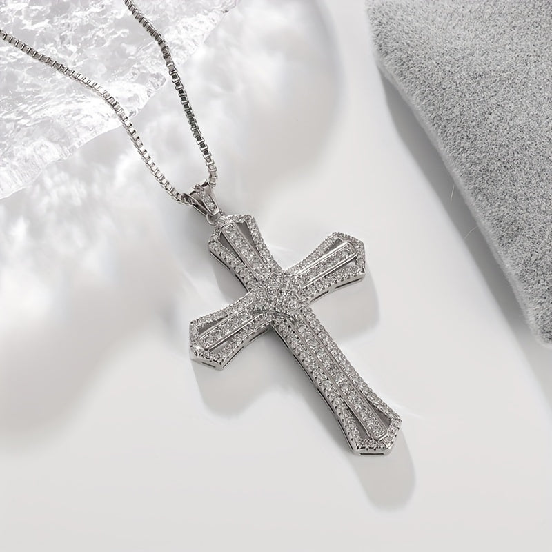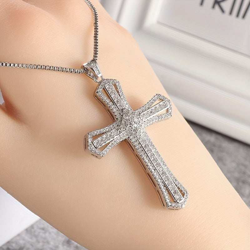 This delicate necklace features a sparkling cubic zirconia cross pendant that makes it a perfect gift for women. The elegant design adds a touch of sophistication to any outfit.