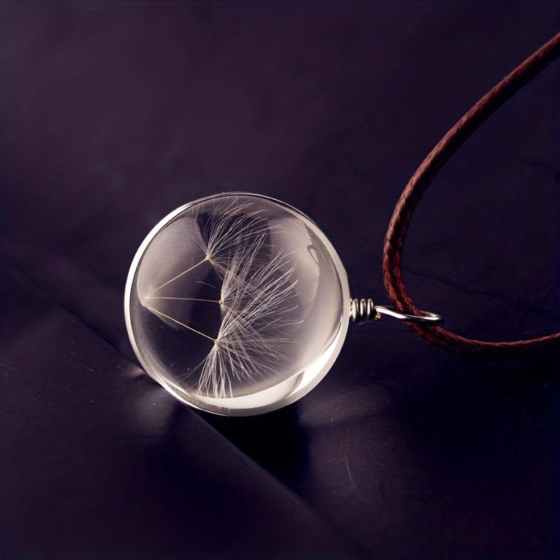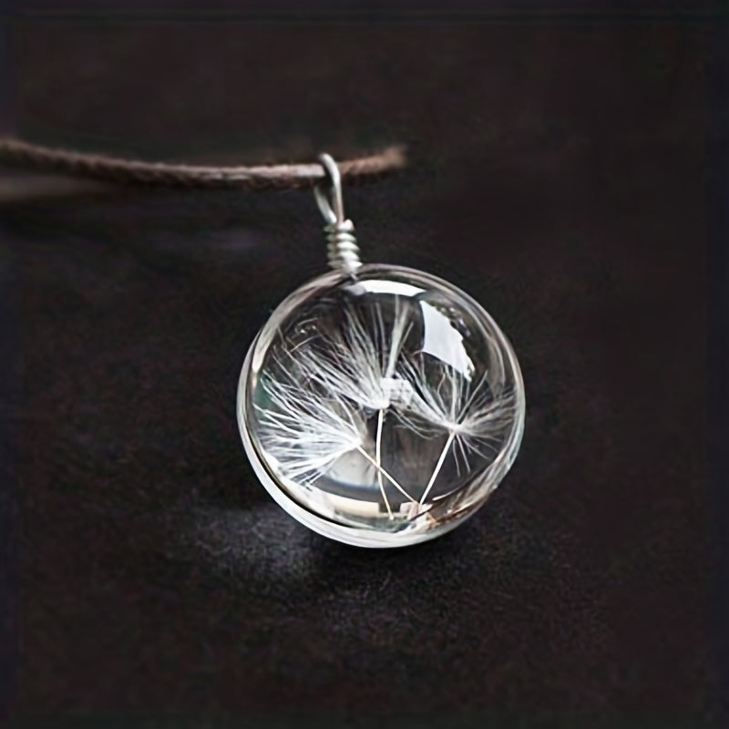 This exquisite necklace features a dandelion dried flower encased in a glass ball pendant, capturing the beauty of nature. The timeless design makes it a perfect accessory for any outfit.
