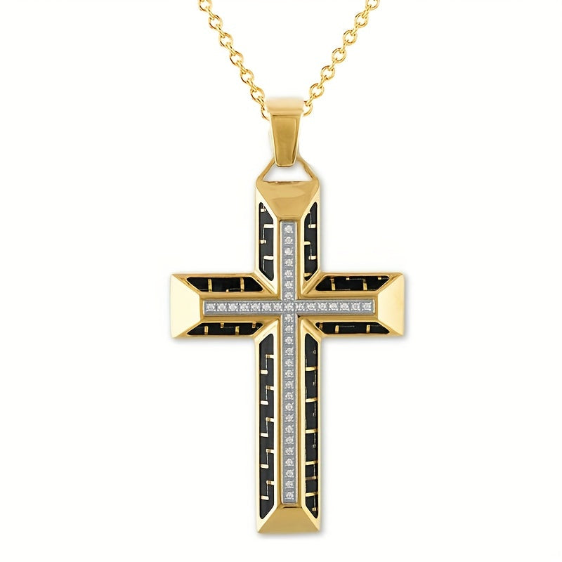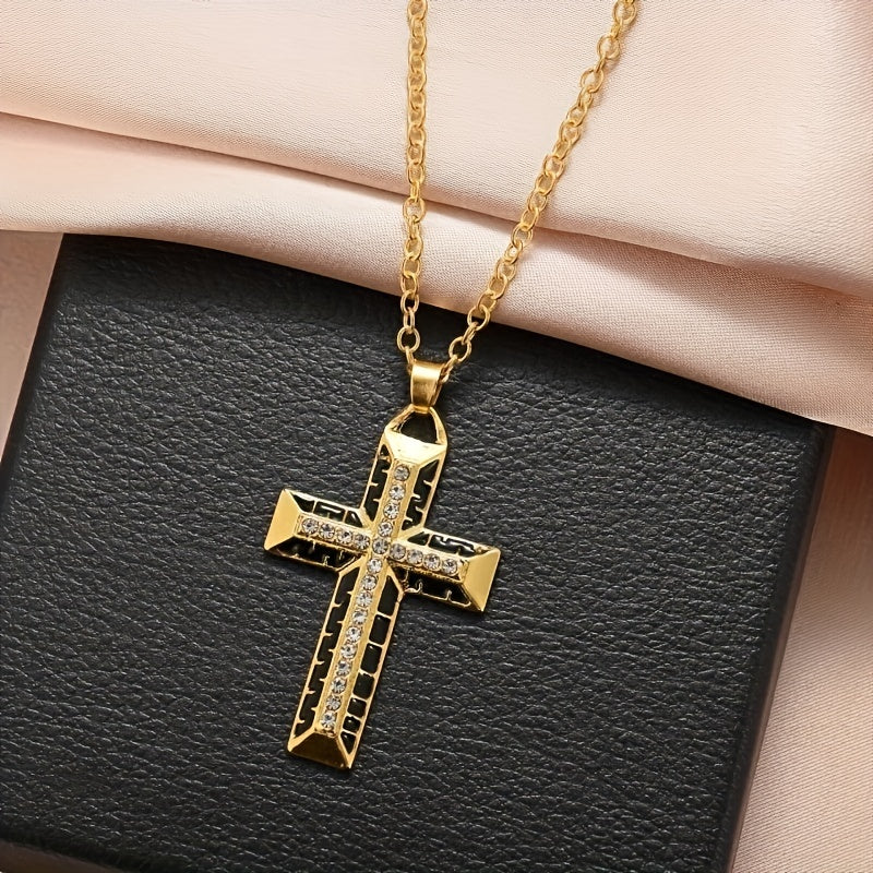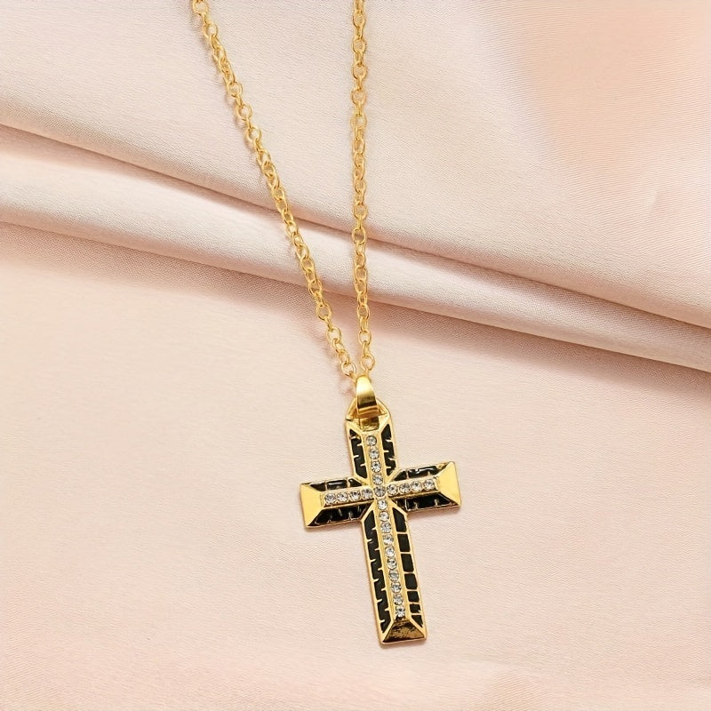 This elegant cross pendant necklace is a perfect accessory for men and women to showcase their Christian faith. It features a golden two-tone design that adds a touch of style to any outfit, making it an ideal gift for Thanksgiving, Christmas, parties, anniversaries, or birthdays.