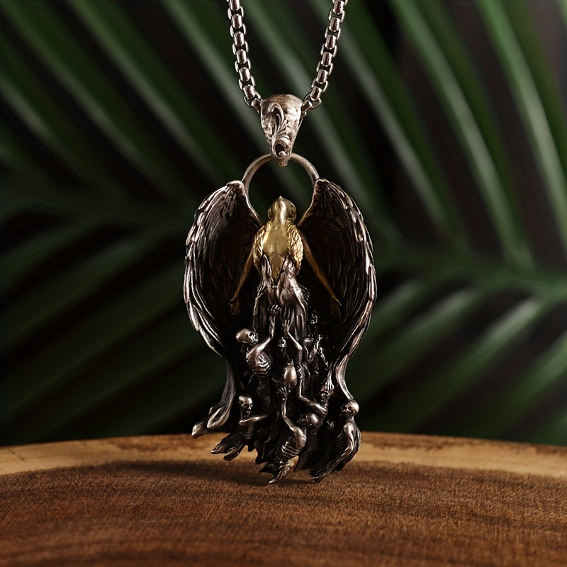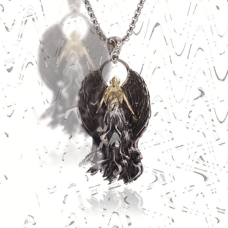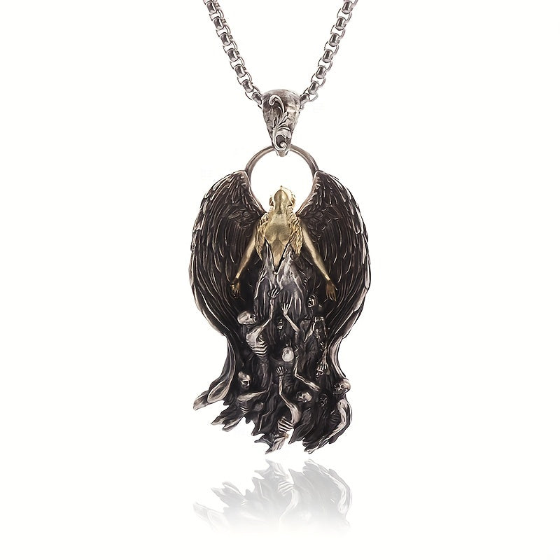 Embrace your dark and light sides with this devil wings angel goddess pendant necklace. Perfect for men seeking a punk gothic style.
