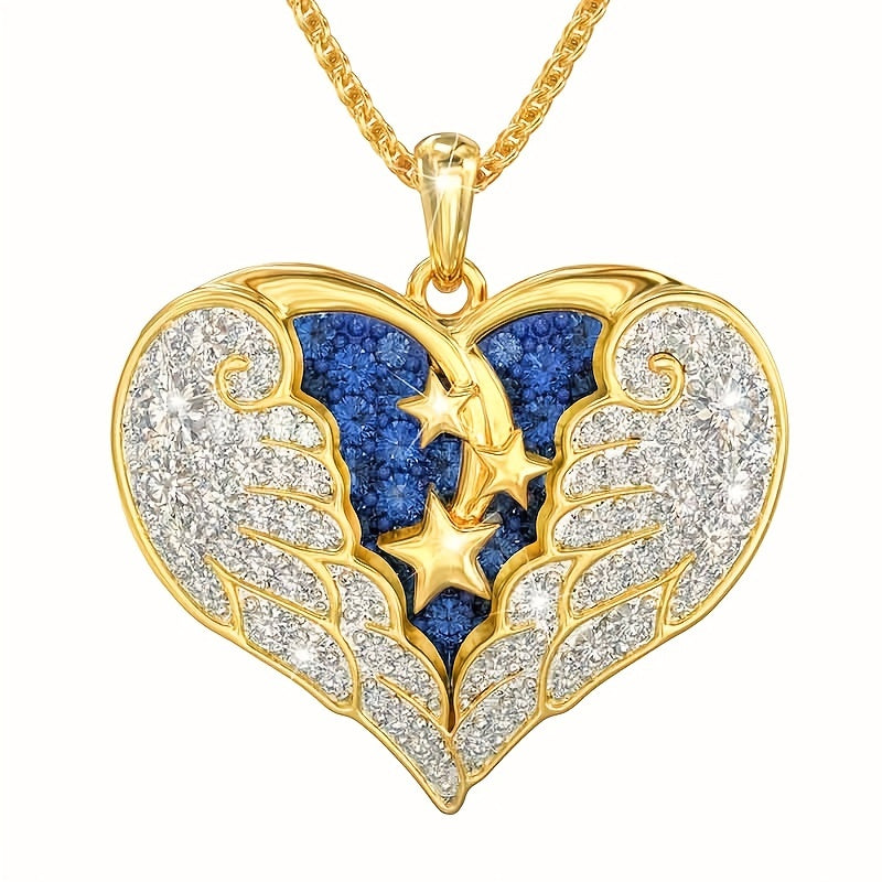 This stunning pendant necklace features a heart design with a diamond star and angel wings. Perfect for men who want to showcase their unique style.