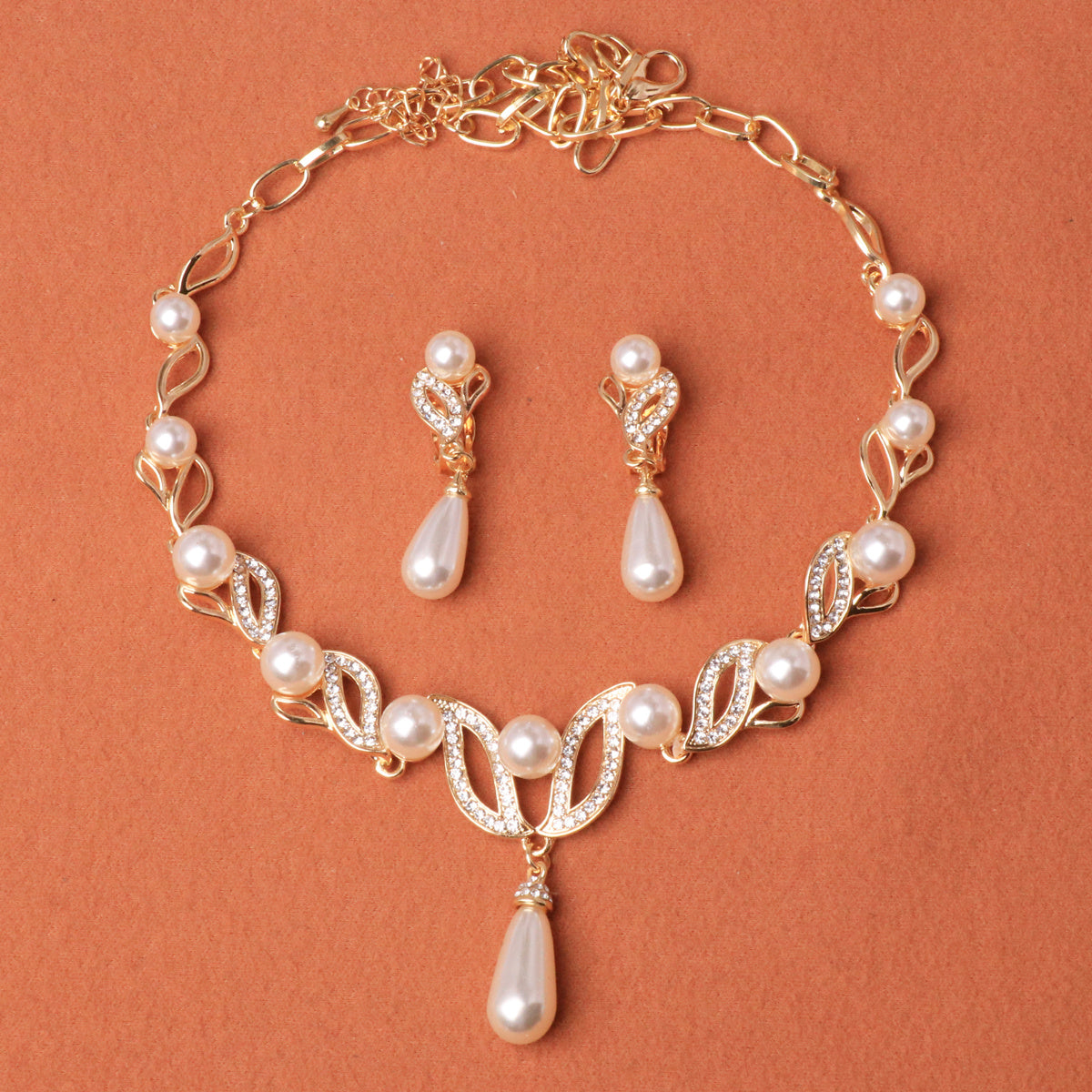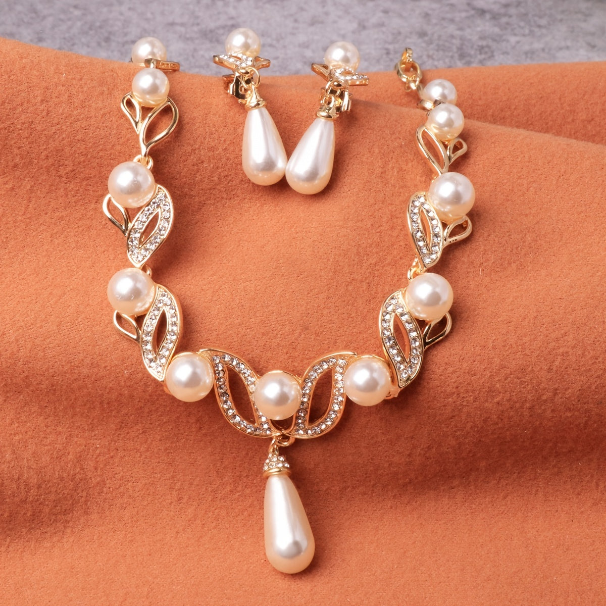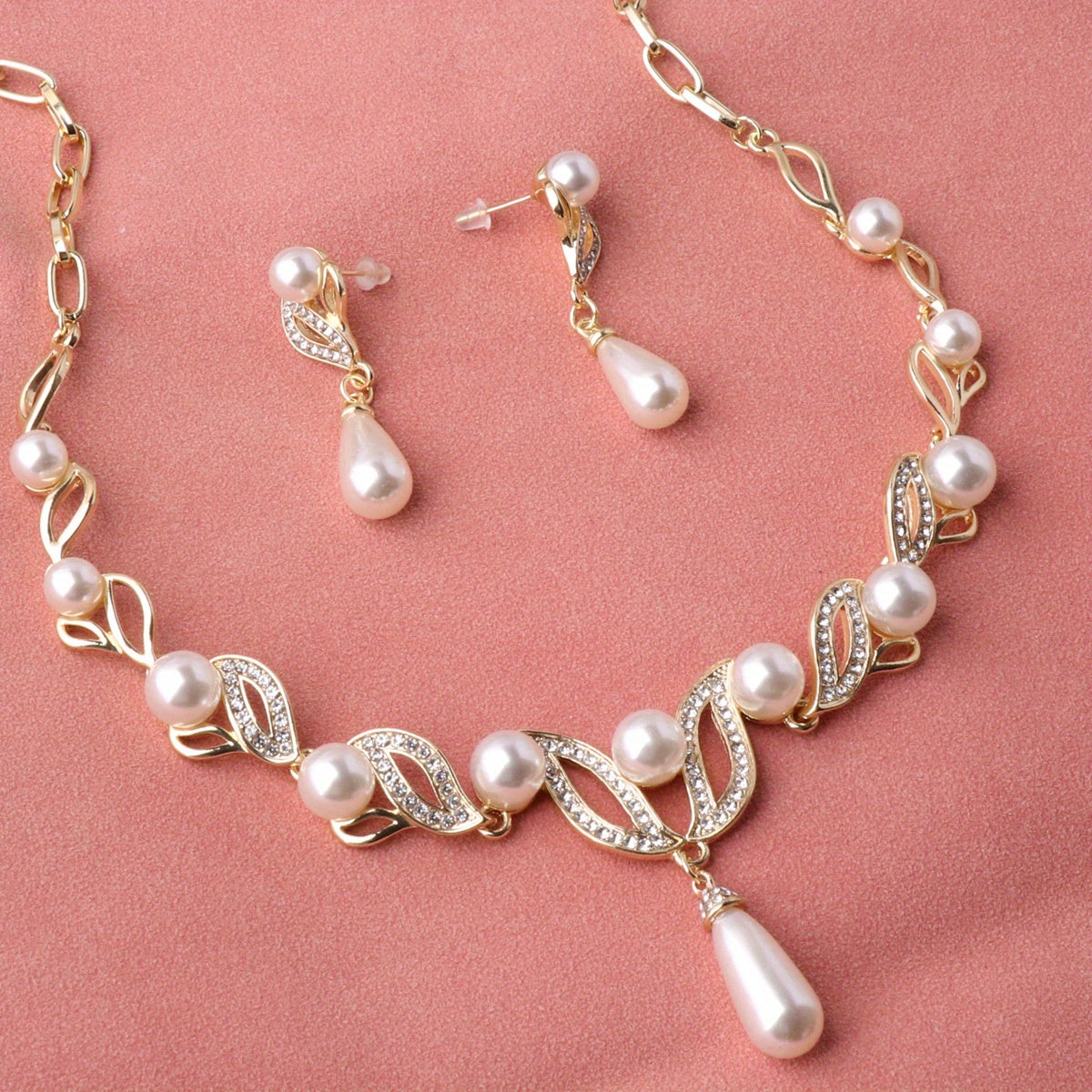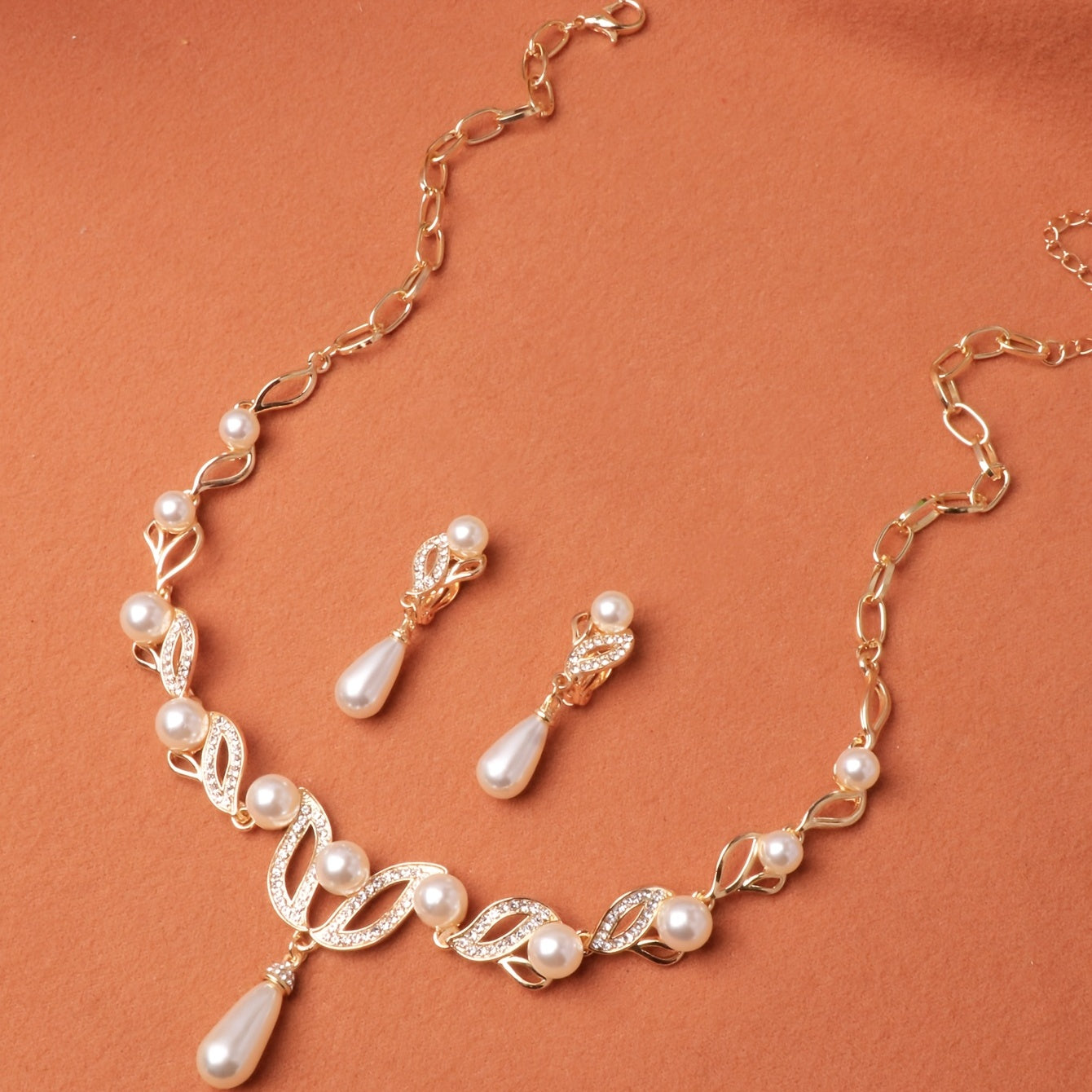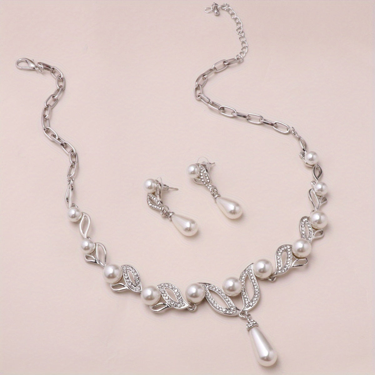 Hand-crafted three-piece set featuring a pair of earrings and two necklaces adorned with elegant pearls.