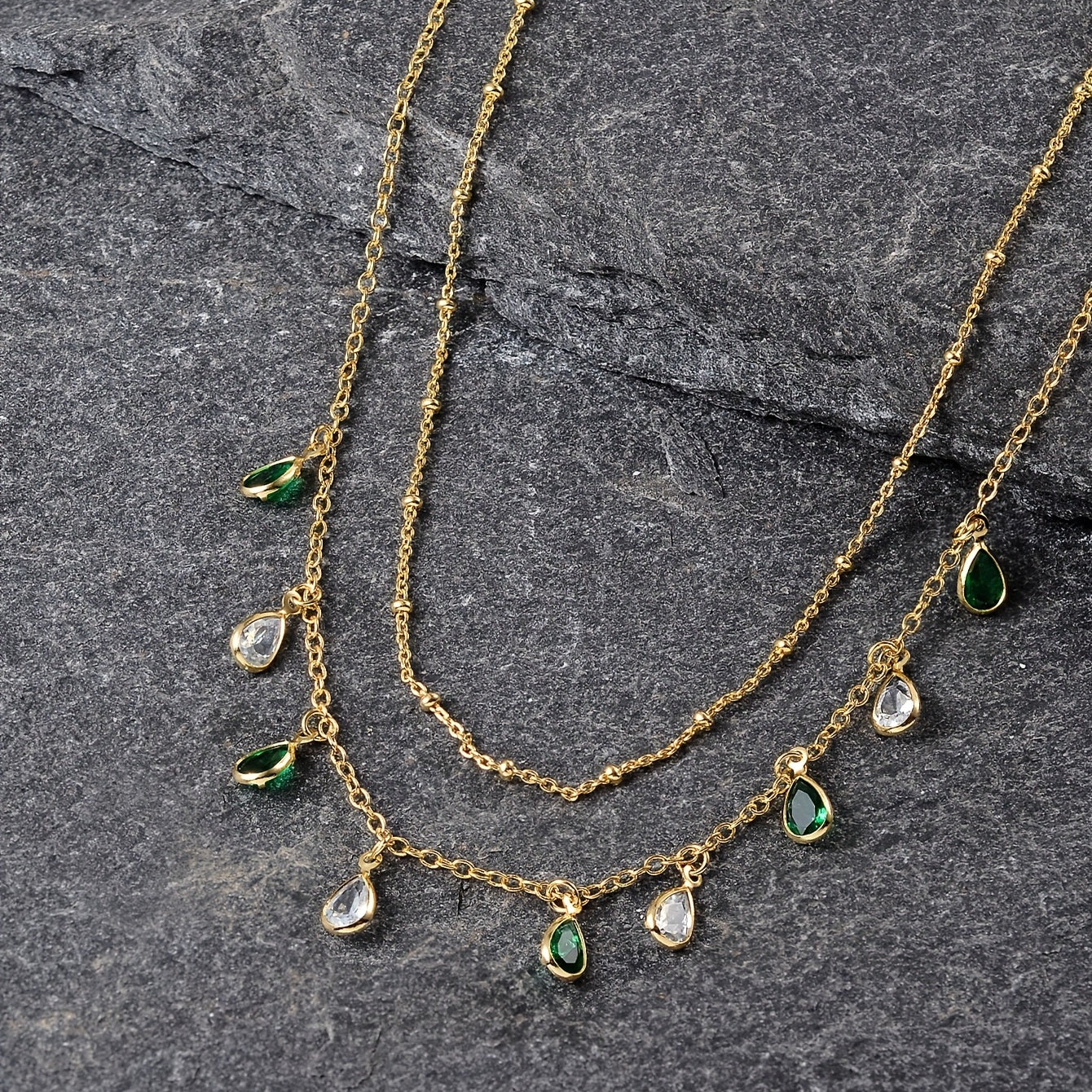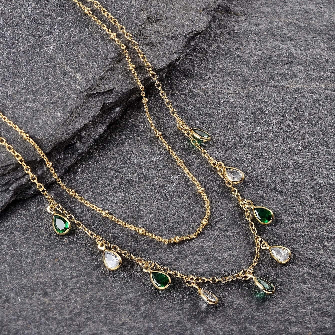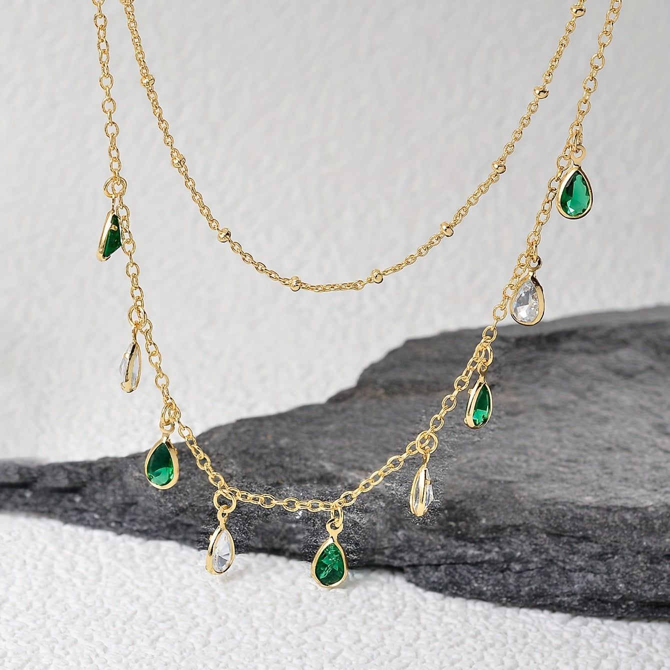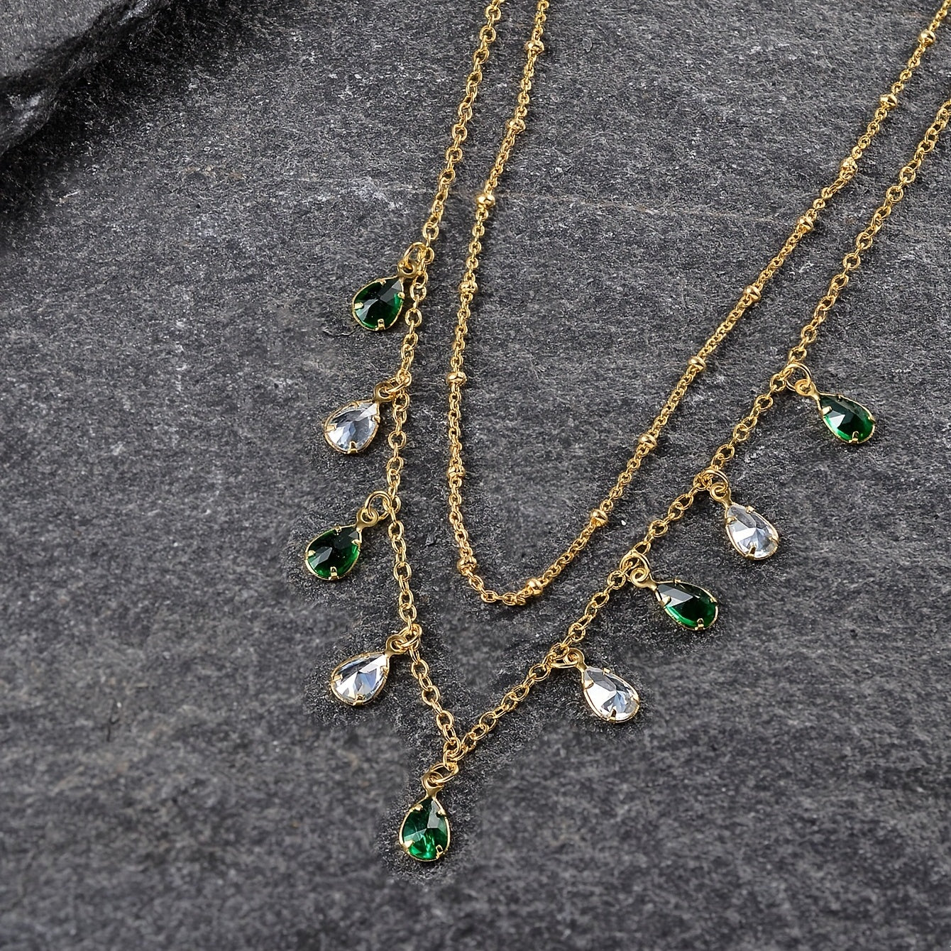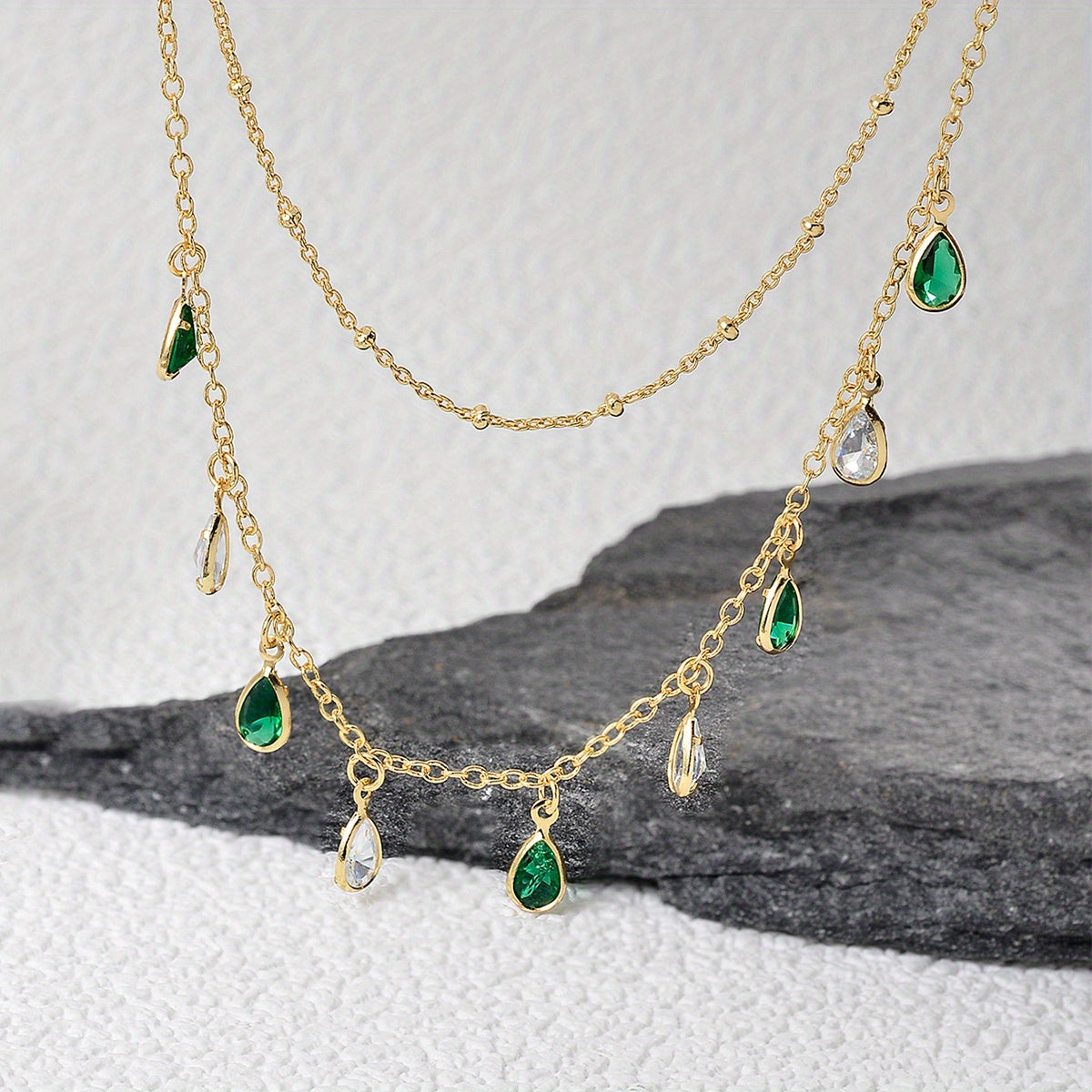 Elegant necklace featuring teardrop shape emerald green zircon. Perfect for St. Patrick's Day or any occasion.