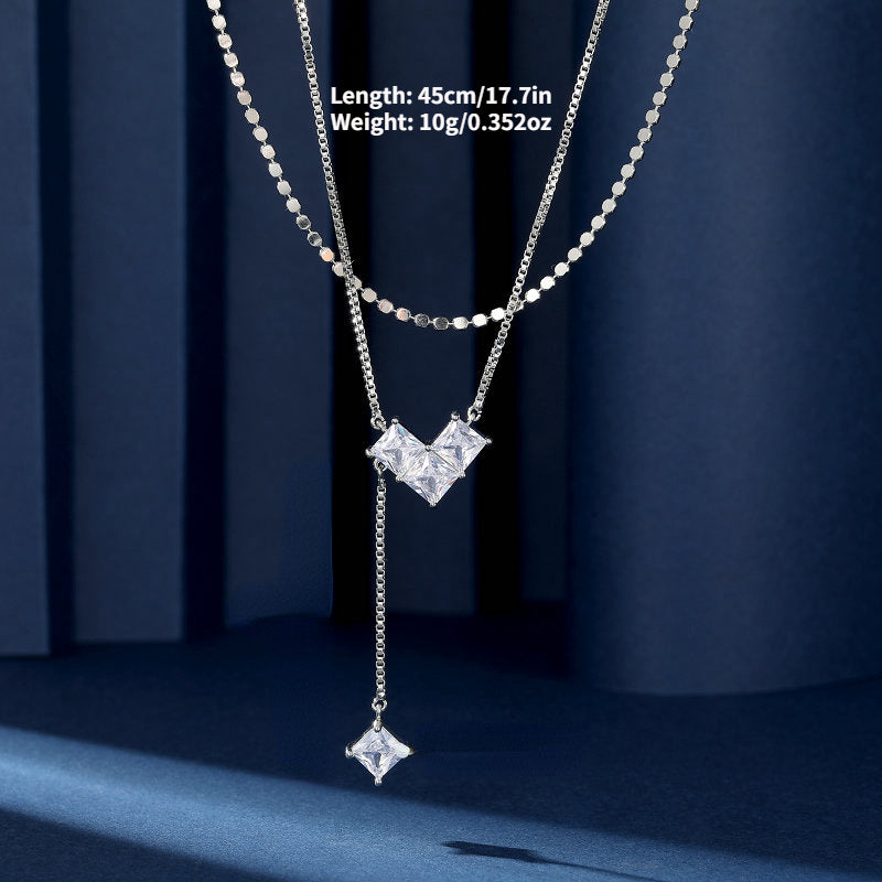 This double layer necklace features a stacking clavicle chain with a romantic love pendant design. Perfect for adding a touch of elegance to any outfit.