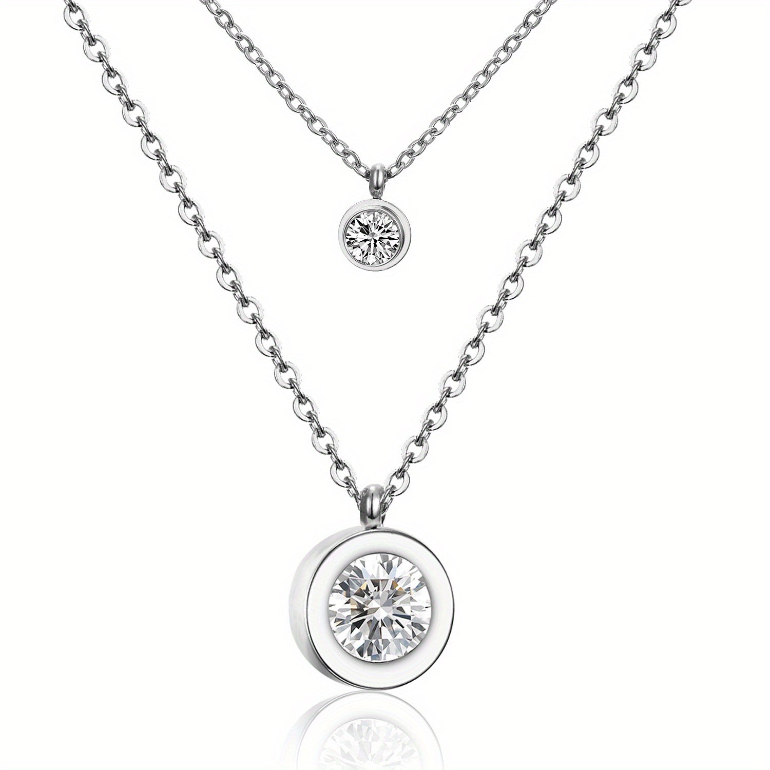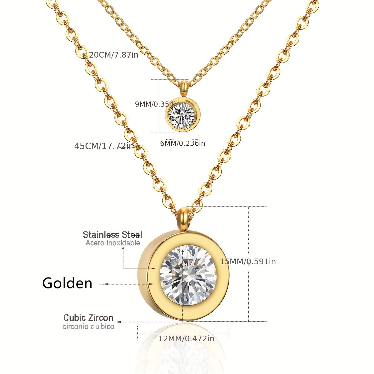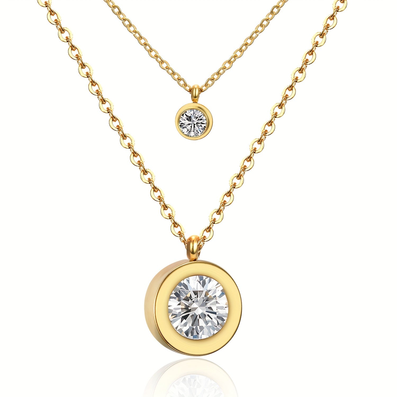 Double Round CZ Pendant Necklace Stainless Steel Chain