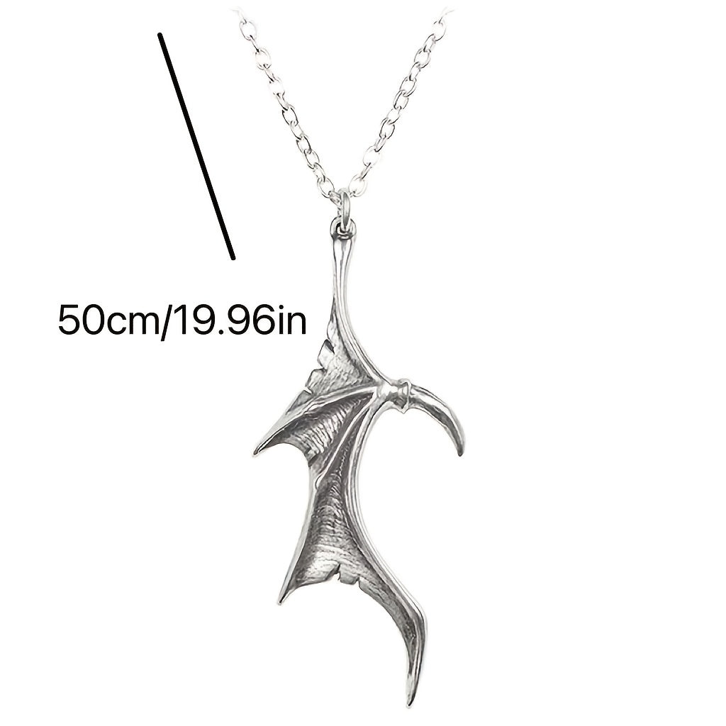 This necklace features a beautiful Dragon Wing Love Heart pendant with a matching charm. The design includes a feather-shaped element for added elegance.