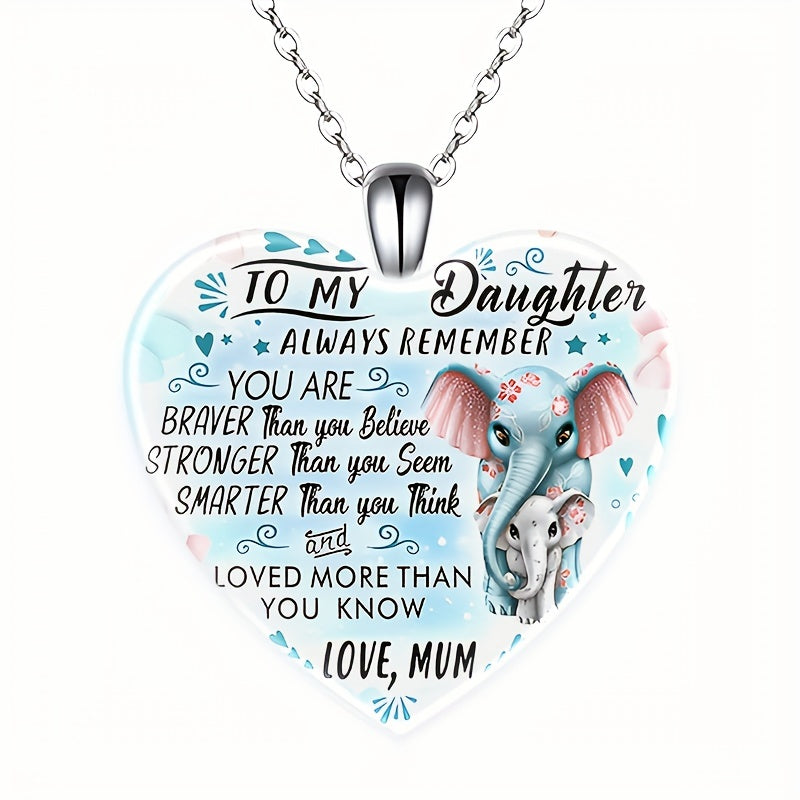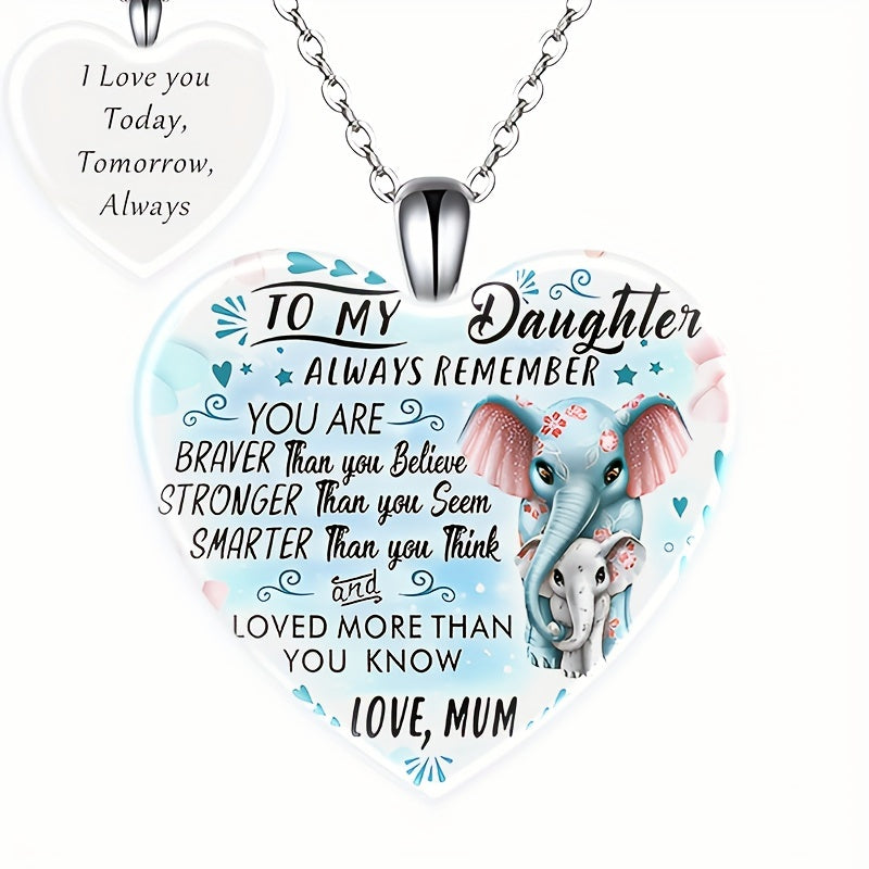 This stunning necklace features an elephant charm with a heart-shaped crystal pendant, making it a perfect gift for your daughter on special occasions.