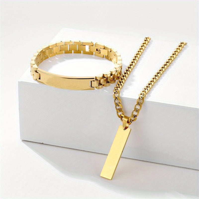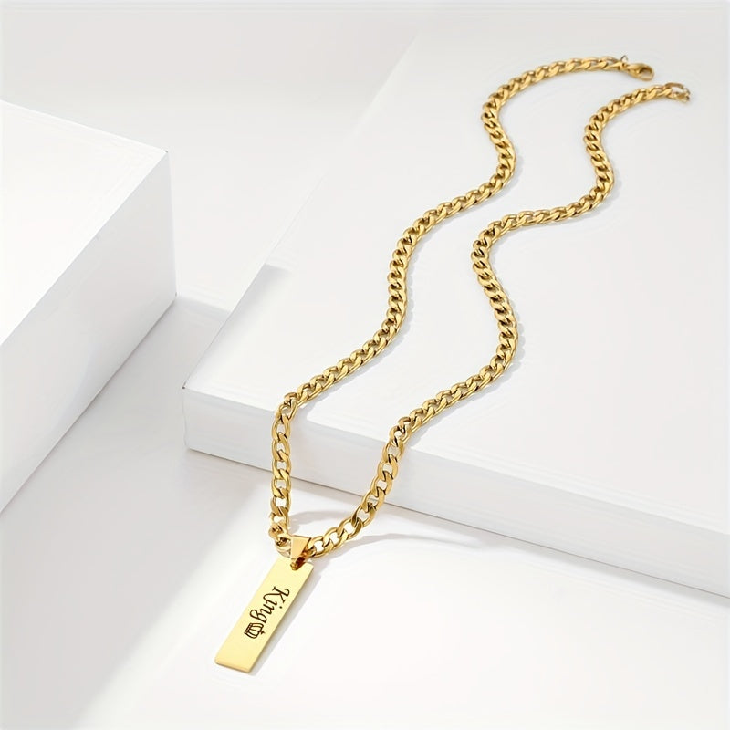This personalized necklace features a punk design crafted from high-quality stainless steel. It can be engraved with a custom name, date, or any text of your choice, making it a unique piece of jewelry for both men and women.