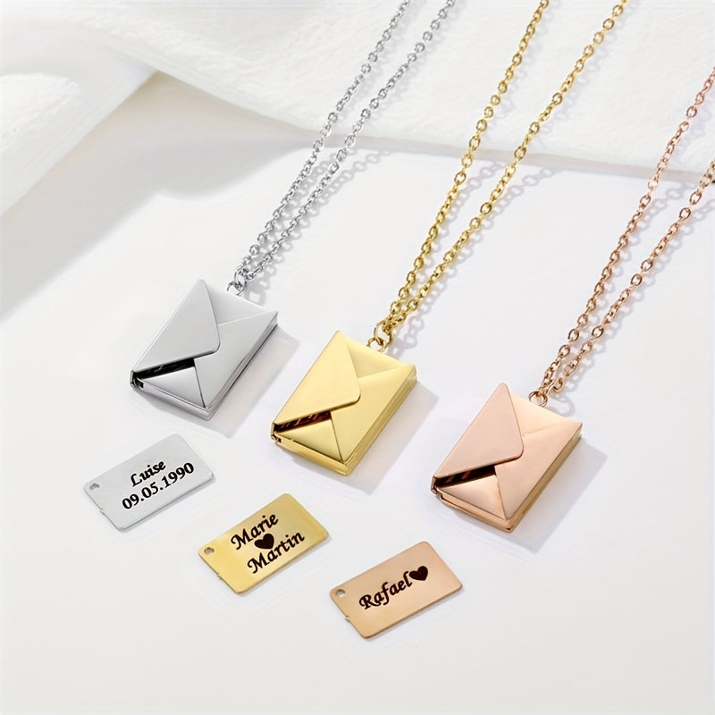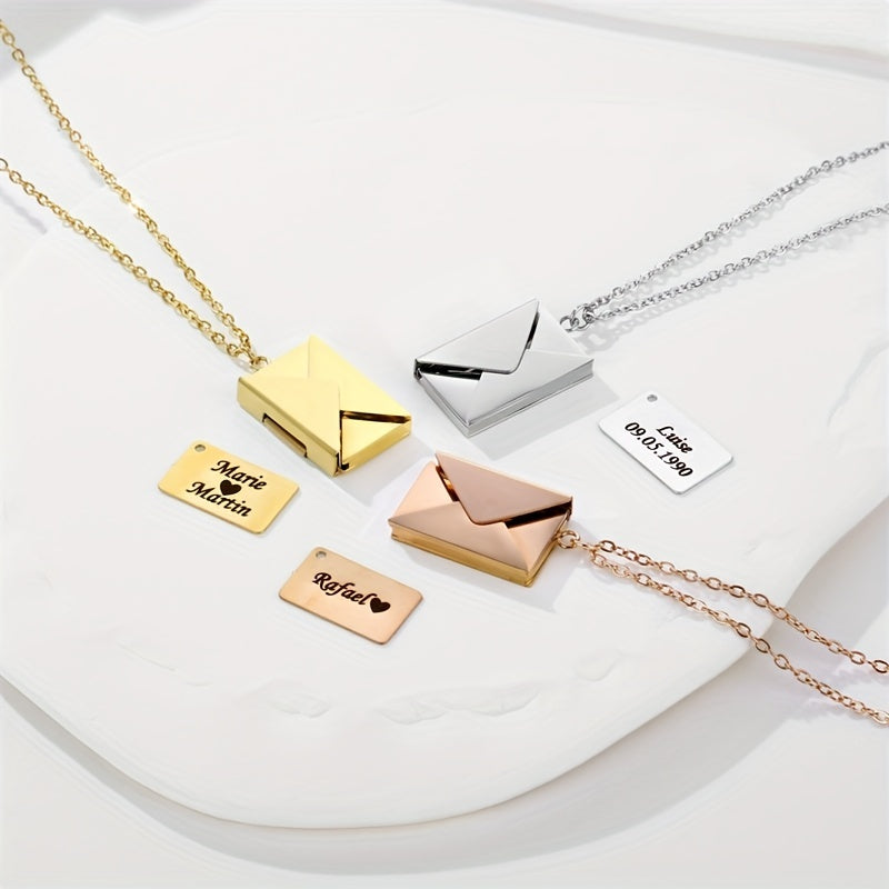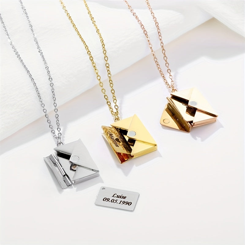 This envelope locket pendant necklace is made of high-quality stainless steel and allows you to keep your secret message hidden. Perfect gift for men and women.