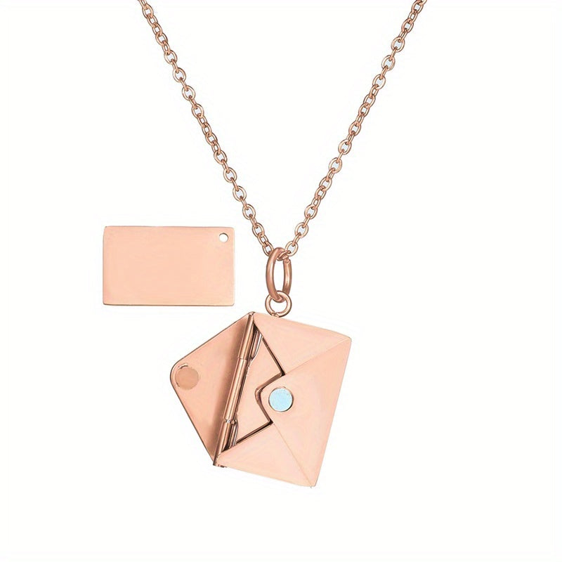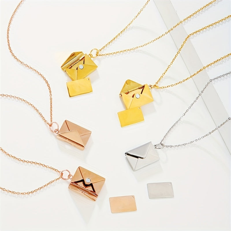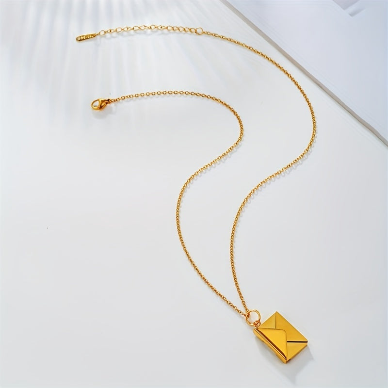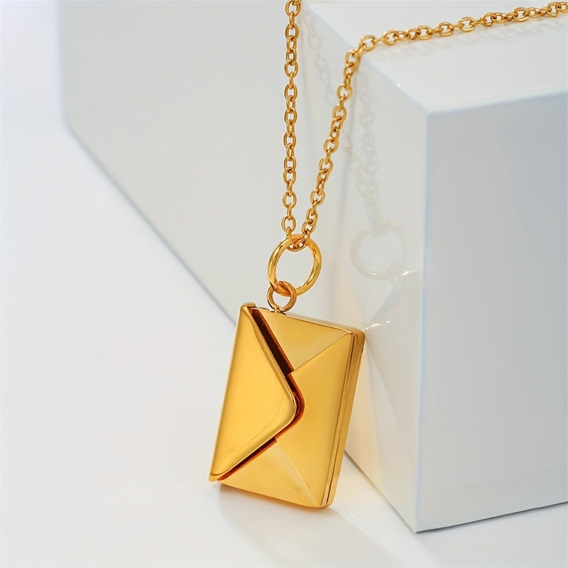 This envelope pendant necklace is a stylish accessory crafted from durable stainless steel. It is suitable for both men and women, adding a touch of elegance to any outfit.
