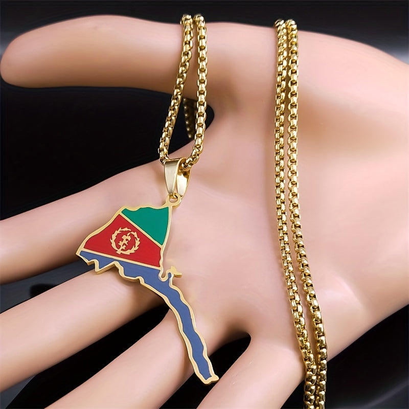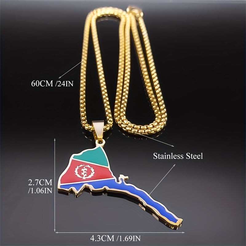 This stylish Eritrea map flag pendant necklace is a perfect accessory to showcase your heritage. It's a great Christmas or birthday gift for men, women, or couples.