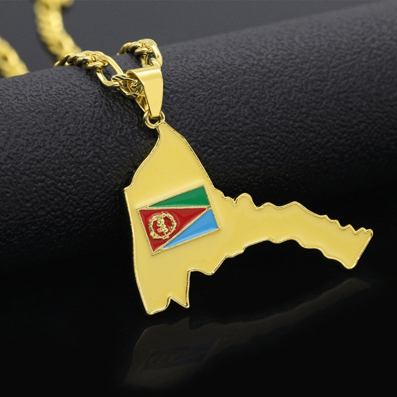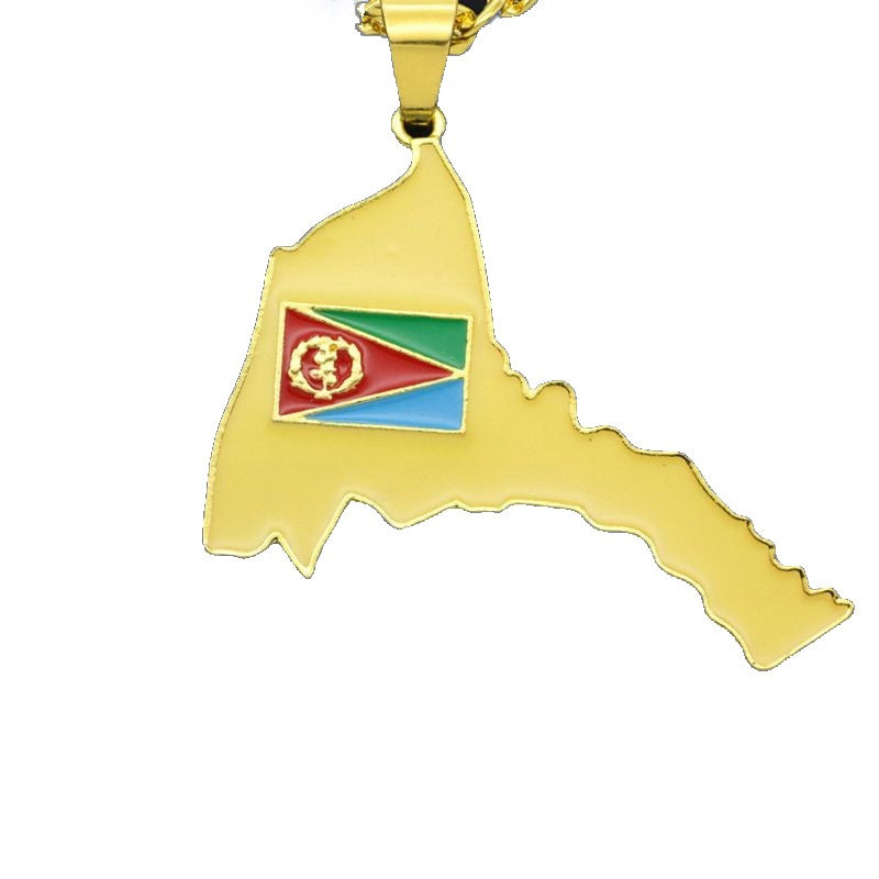 Vintage Eritrea map flag pendant necklace with a punk hip hop choker design. Perfect accessory for a stylish look.