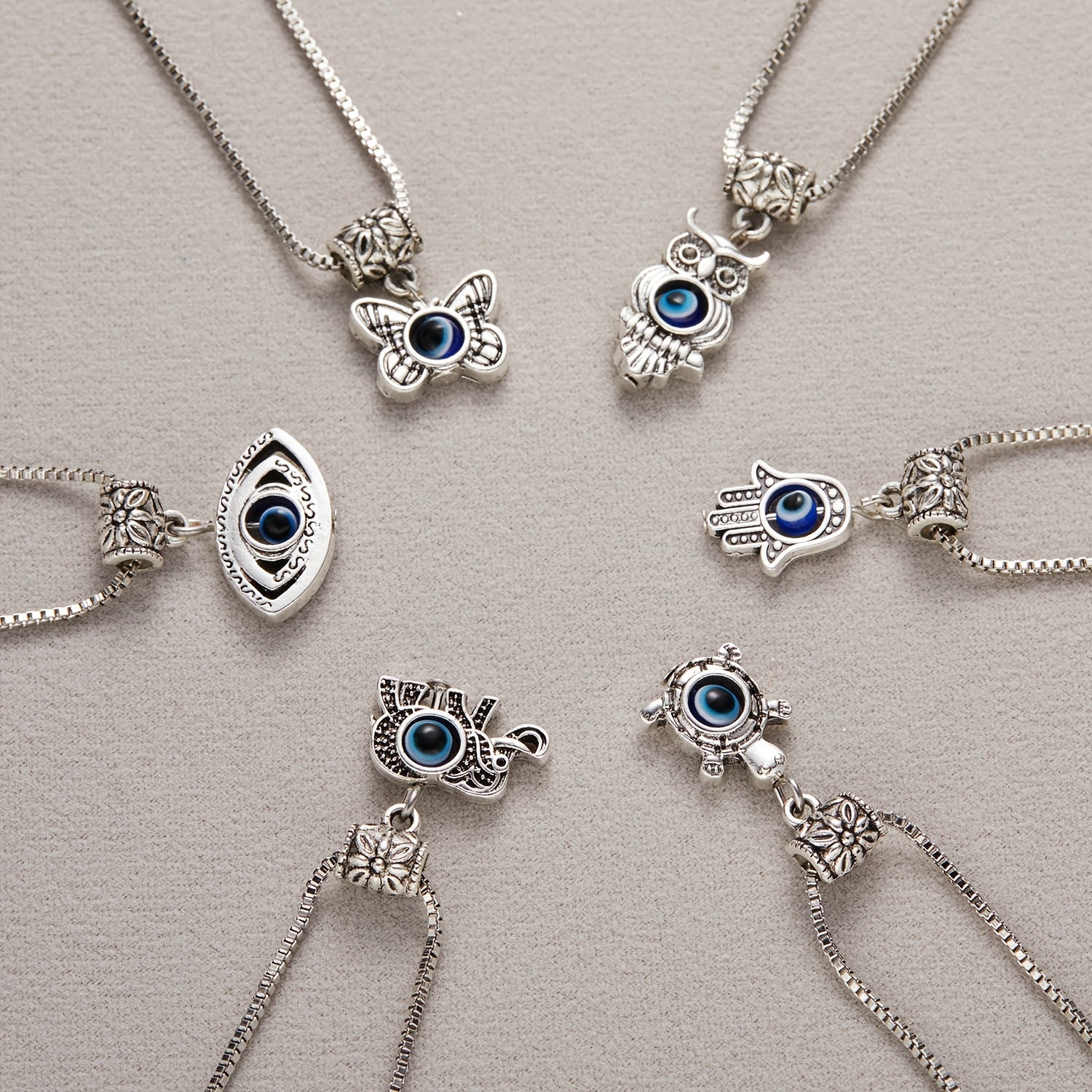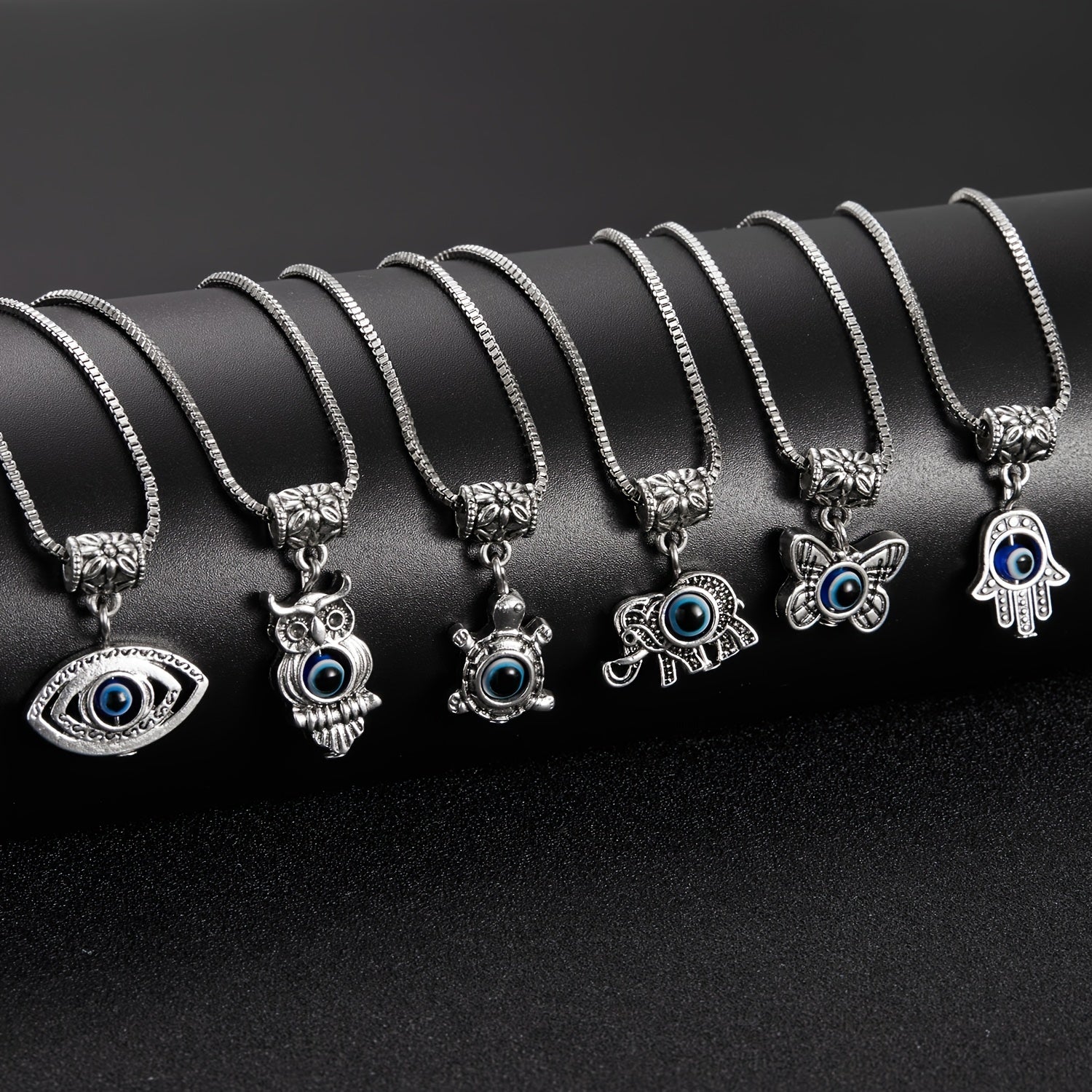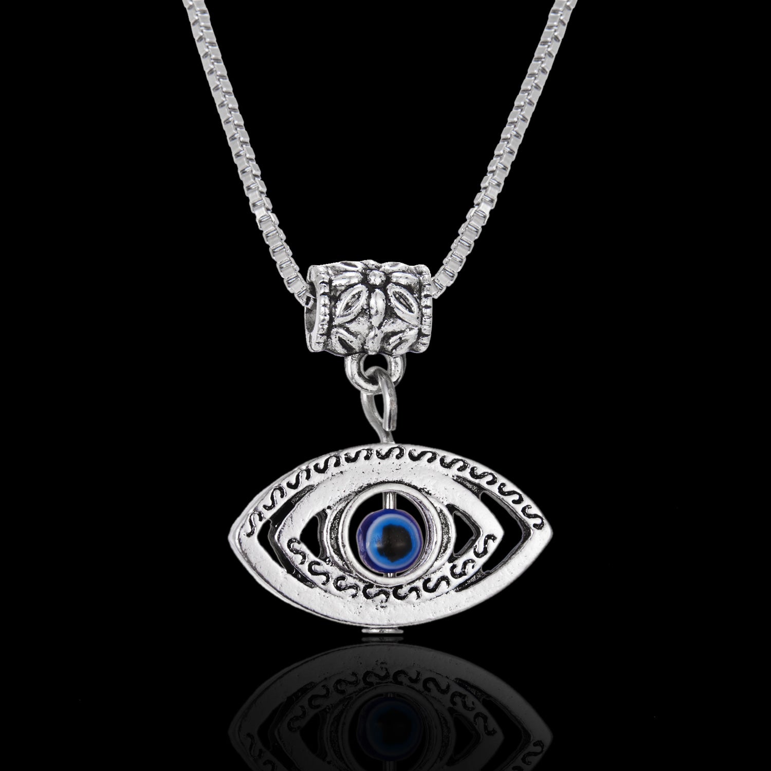 This eye pendant necklace features an evil eye design on metal chains, perfect for both women and men seeking protection and luck in their jewelry.
