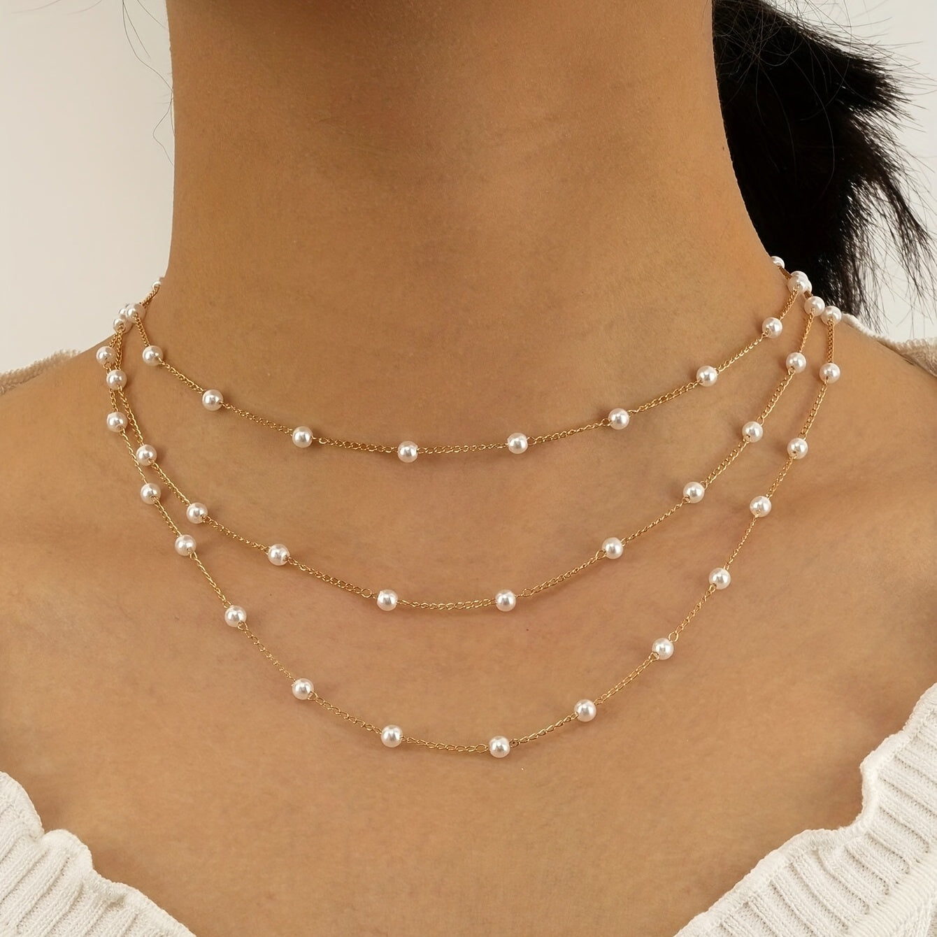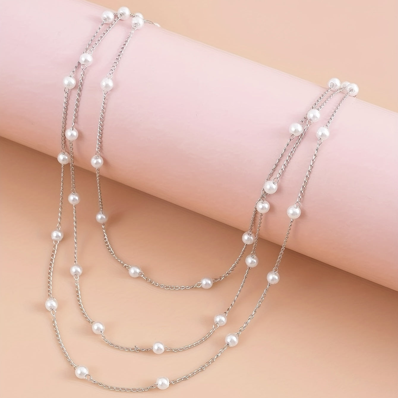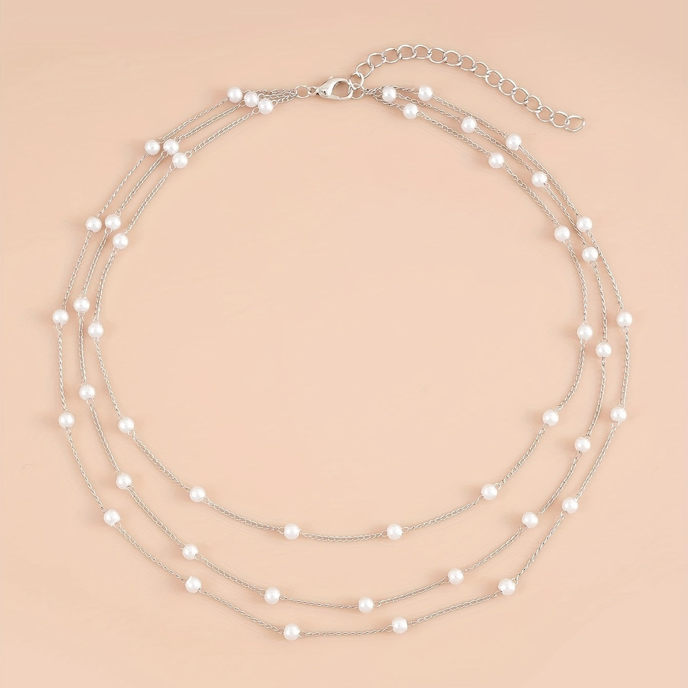• Multilayer faux pearl chain necklace