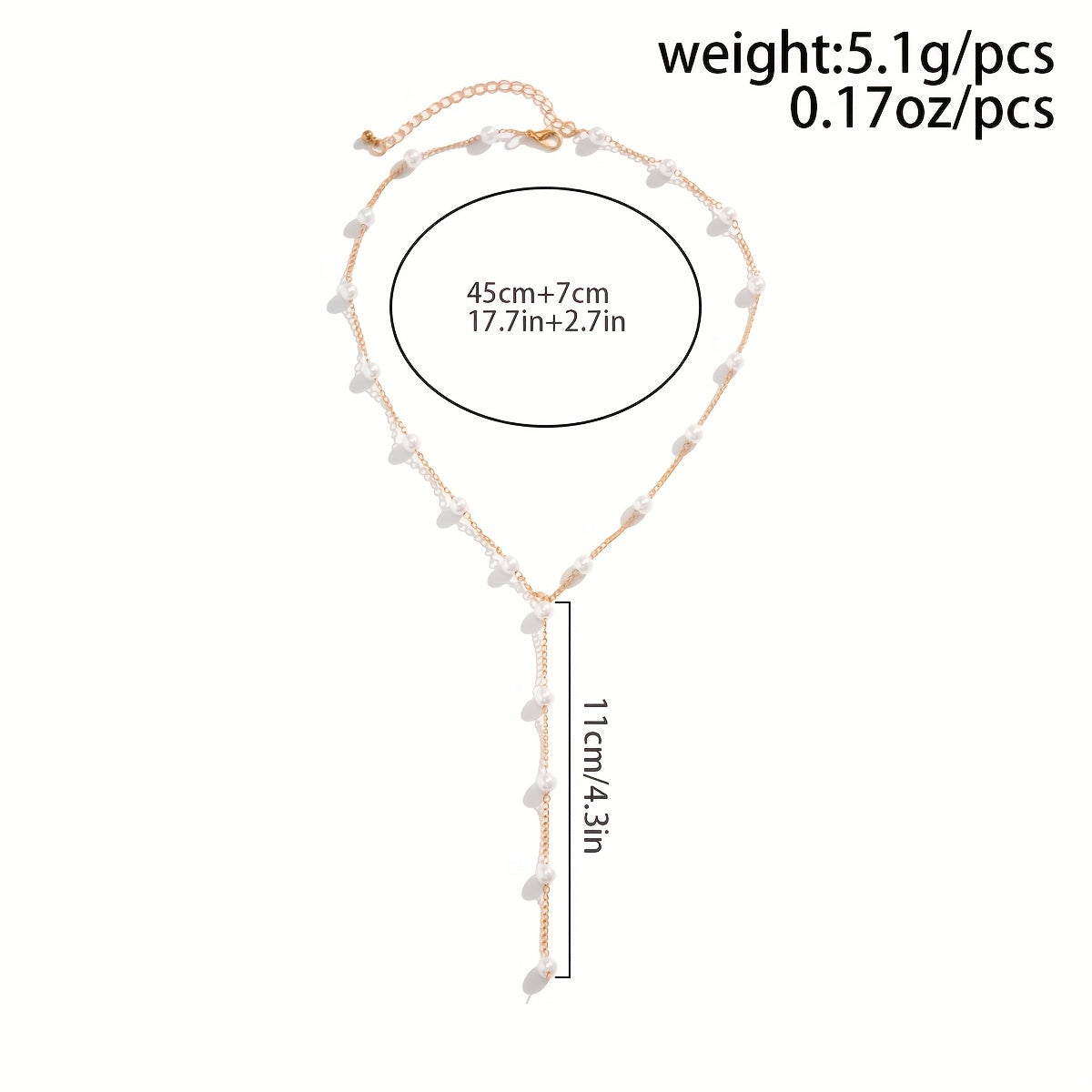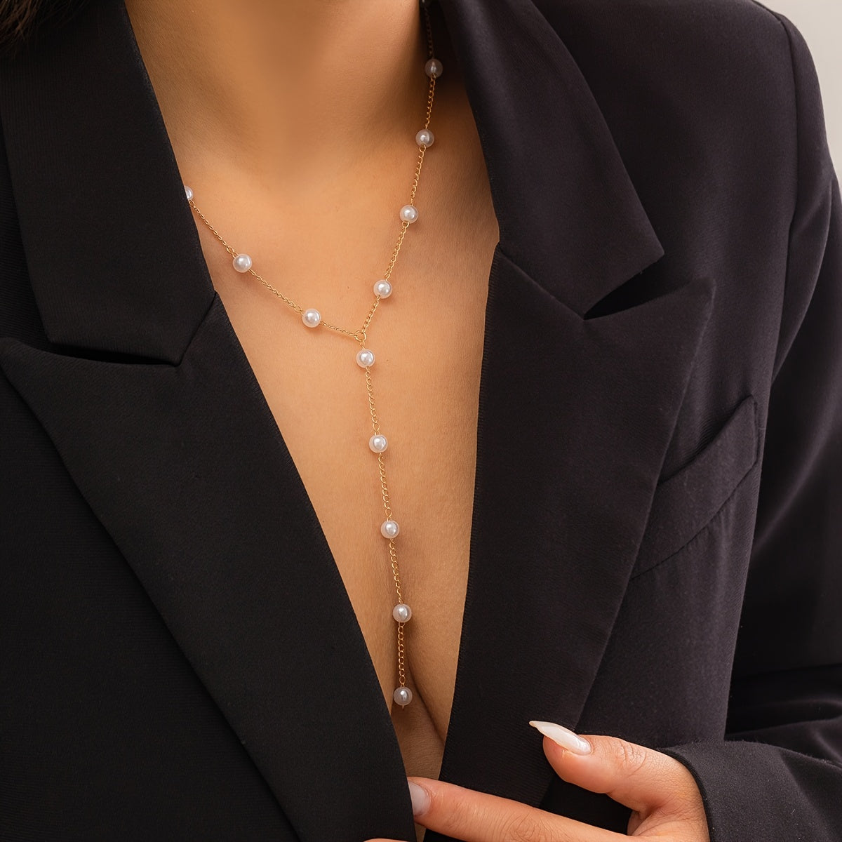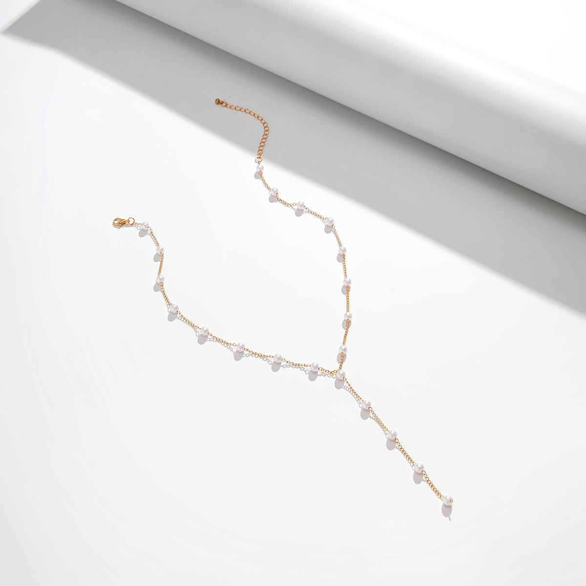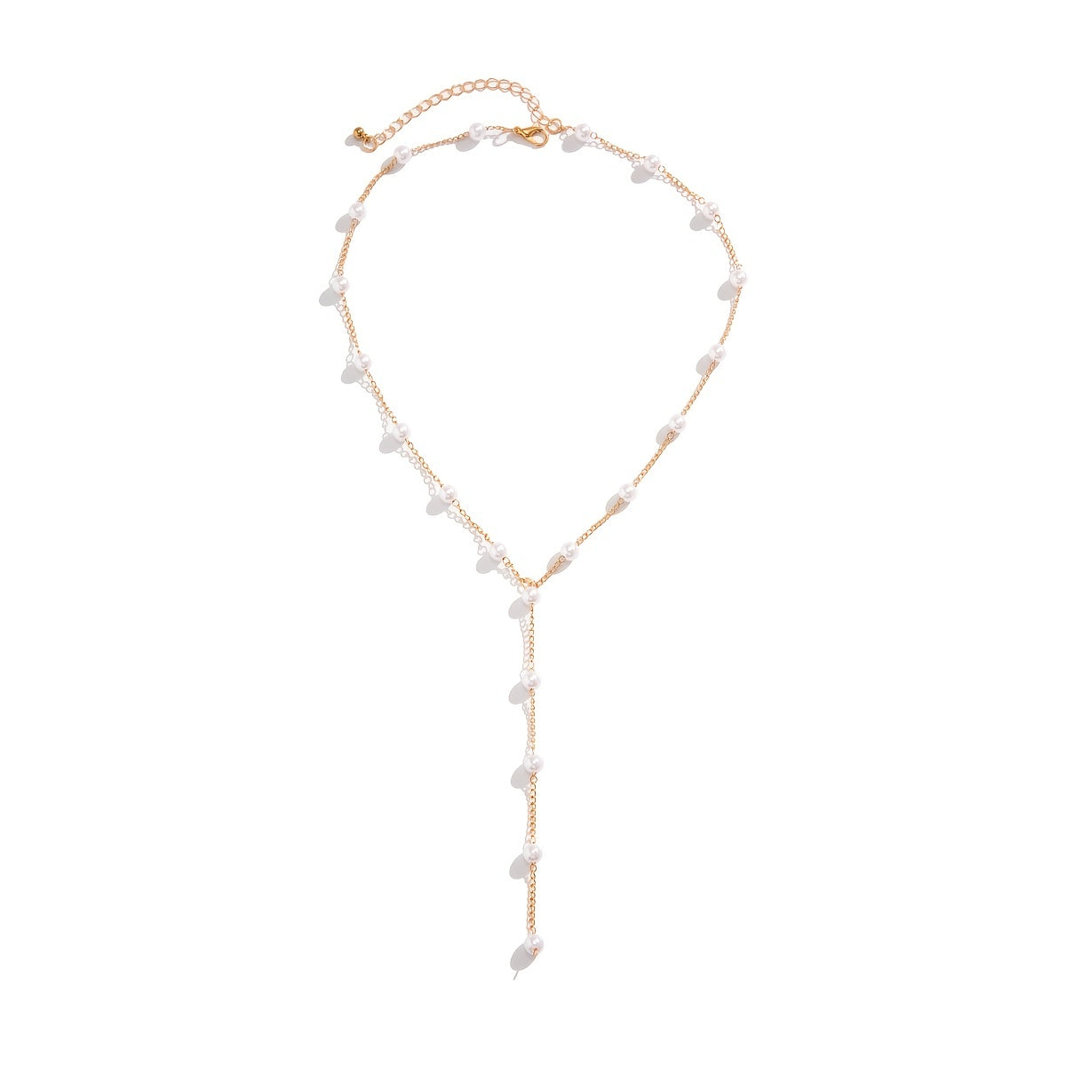 Elegant and stylish faux pearls Y shape chain necklace that can be adjusted to suit your outfit. Perfect accessory for women's clothing.