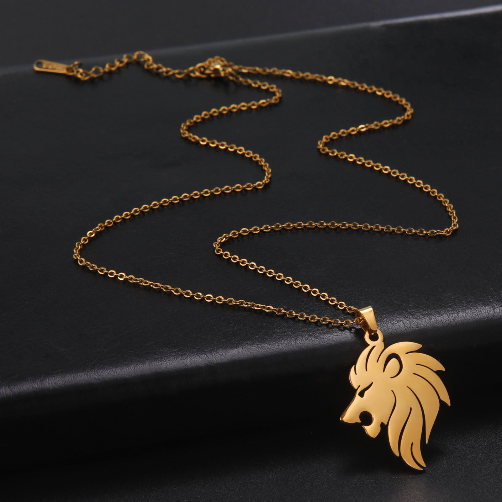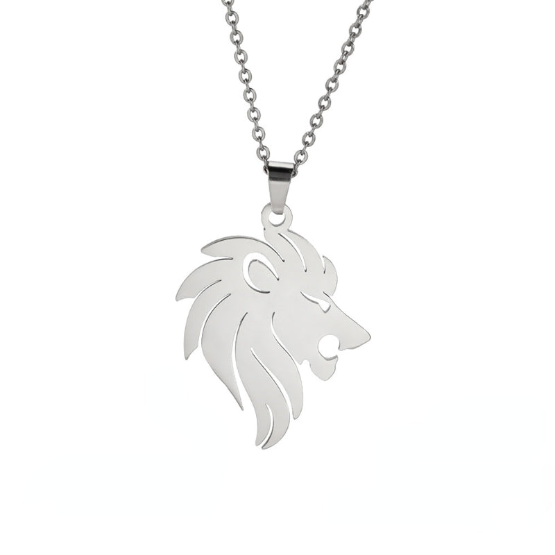 This stainless steel lion necklace features a beautifully crafted lion head pendant that exudes strength and style. Perfect for men who appreciate unique jewelry pieces.