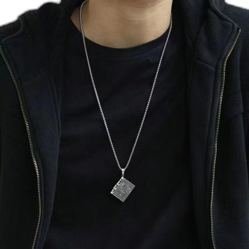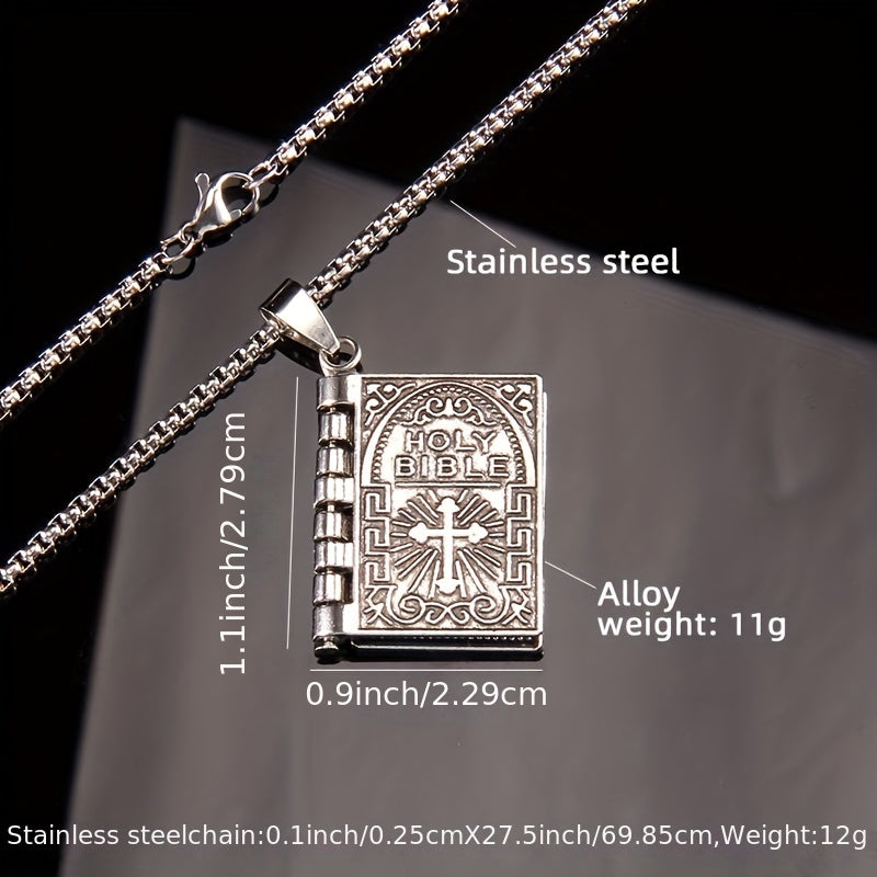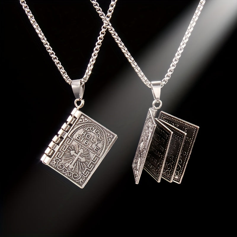 This stylish pendant necklace features a foldable design with a Bible cross pendant. Perfect for adding a hip hop vibe to your look.