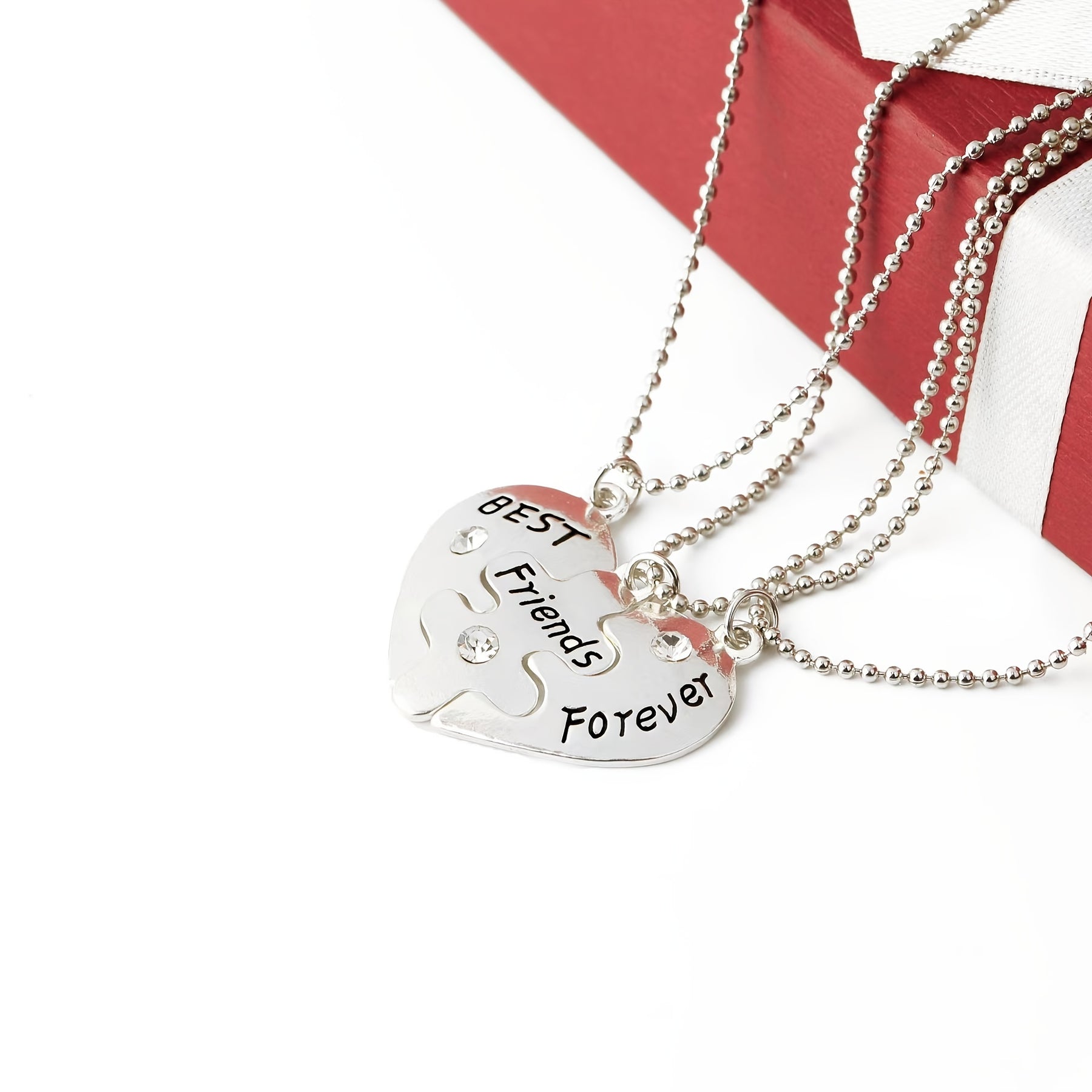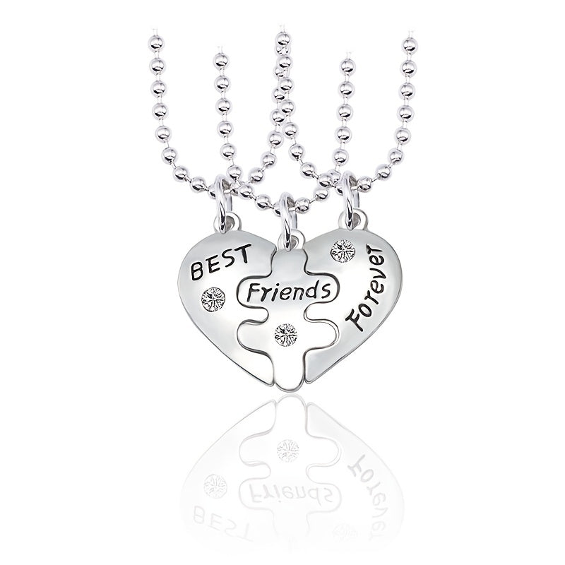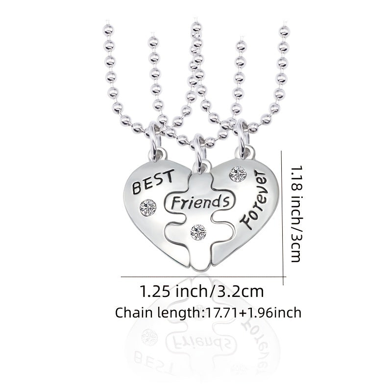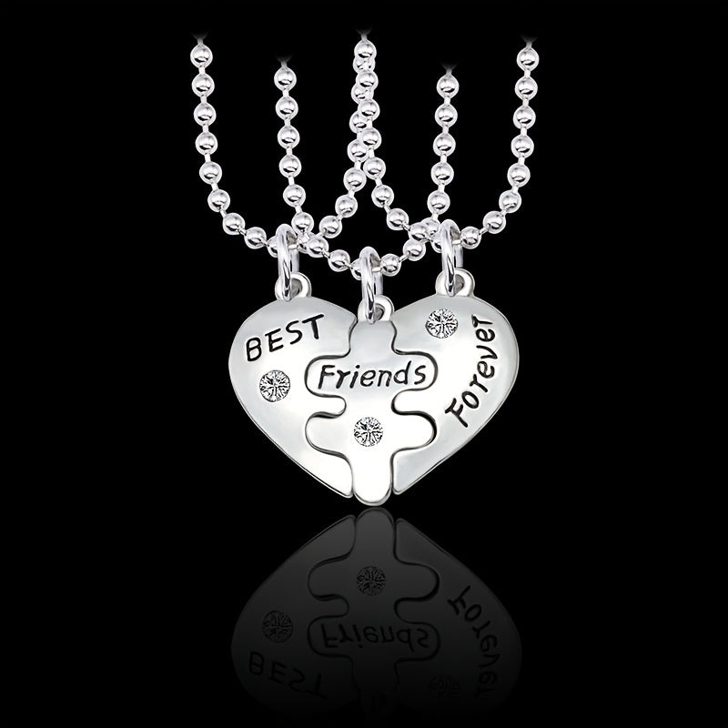 Friends Puzzle Pendant Necklace Heart Shape Pendant Neck Chain Jewelry 3 Pcs