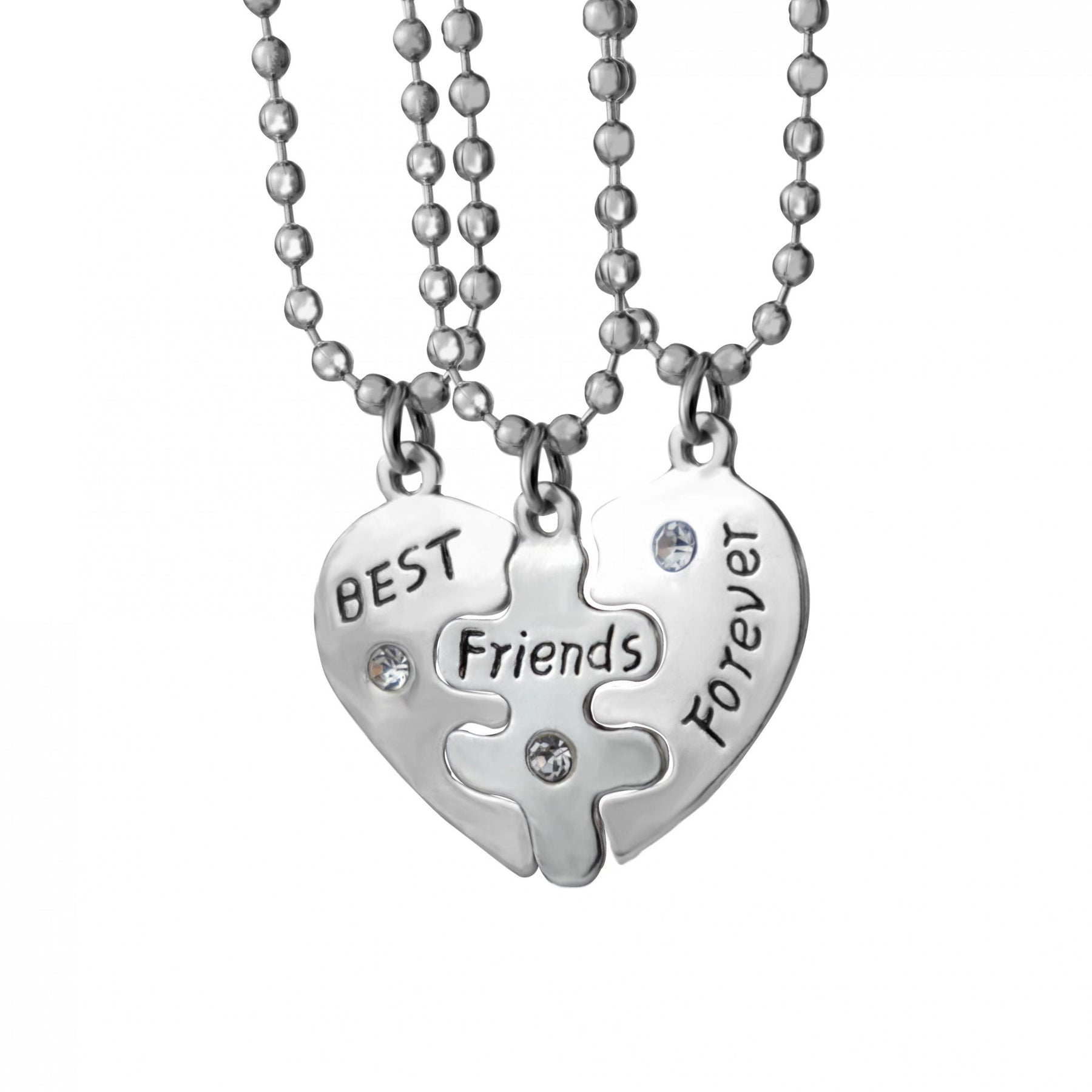 This set of 3 puzzle heart pendant necklaces is perfect for sharing with your friends. Show your connection and bond with these matching necklaces.
