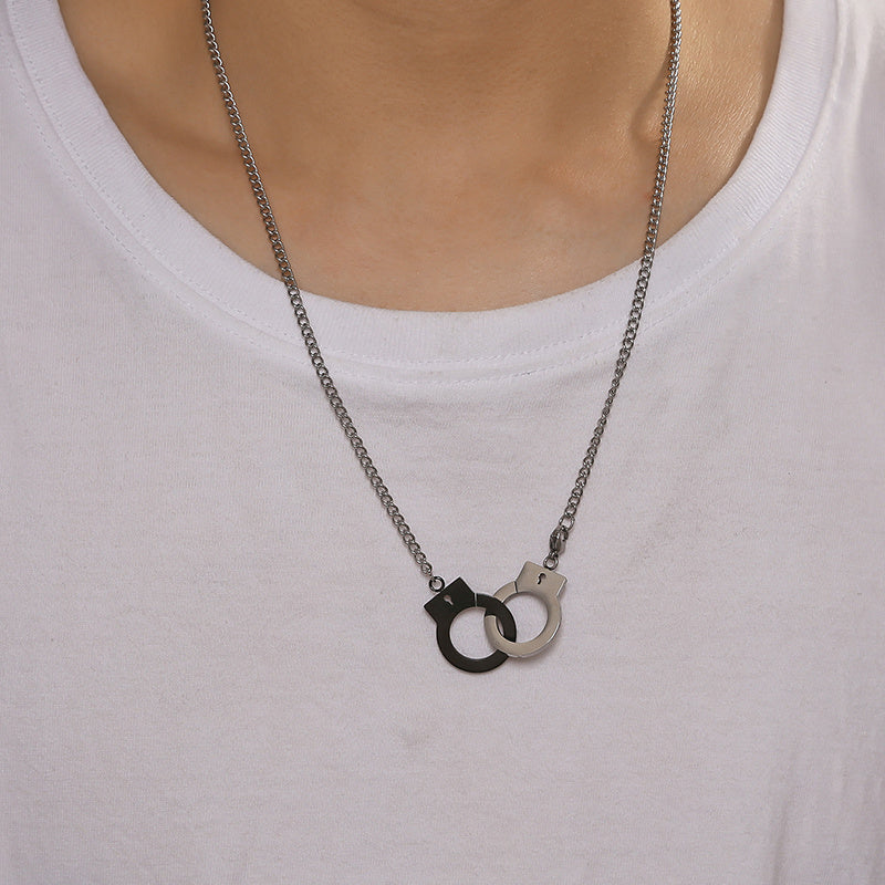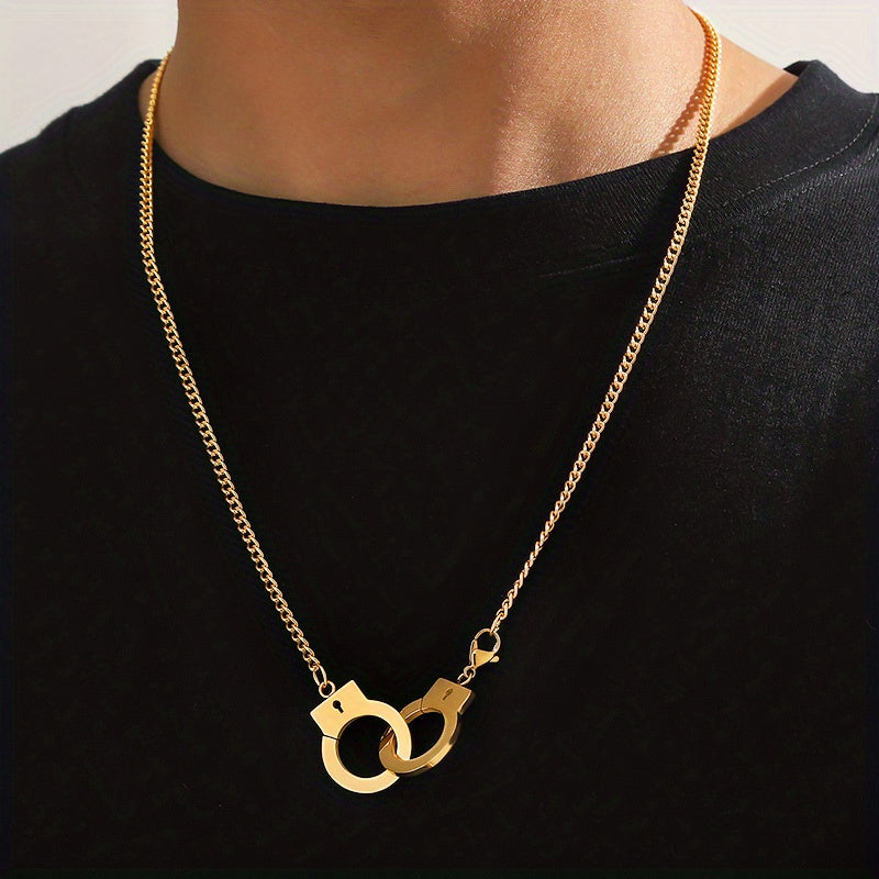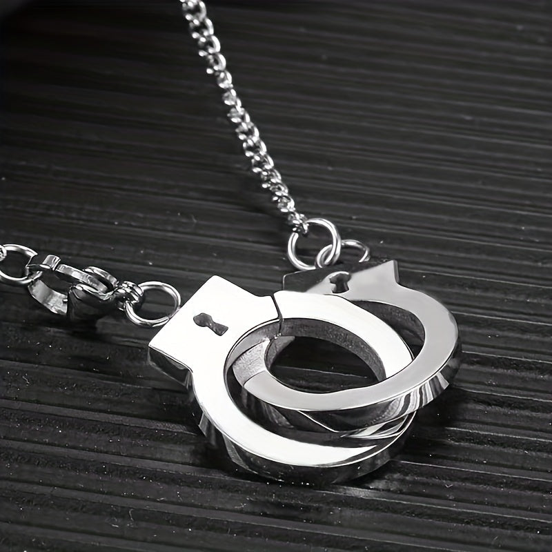 Add a touch of edgy style with this stainless steel handcuff charm pendant necklace for men.