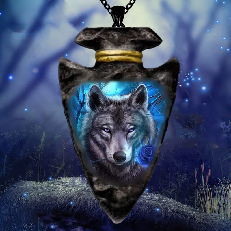 Geometric Triangle Rose Wolf Chain Pendant Necklace Punk Hip hop Men