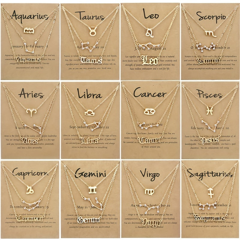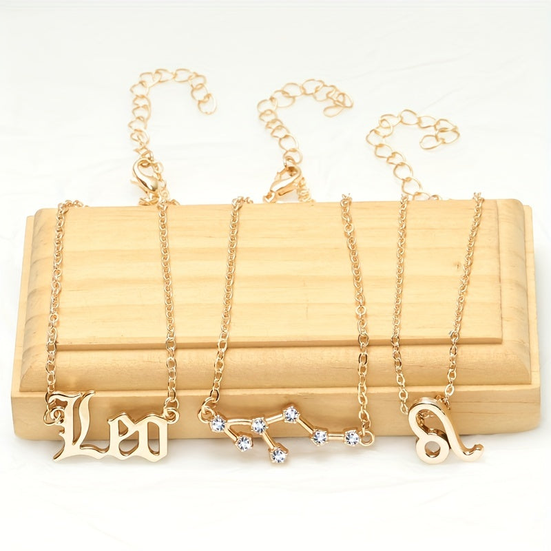 This set includes a golden plated necklace with 12 zodiac symbols, retro alphabet star map pendant, and constellation card. Perfect for cross-border selling.
