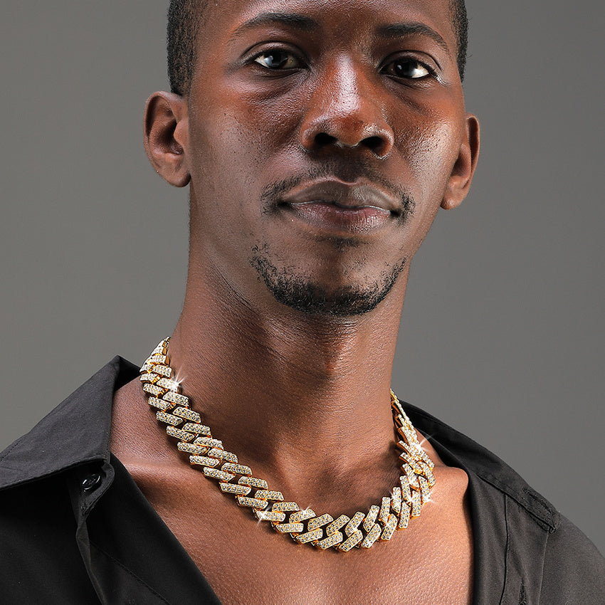 This exquisite golden allover necklace adds a touch of elegance to any outfit.