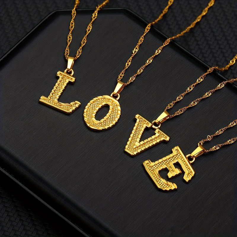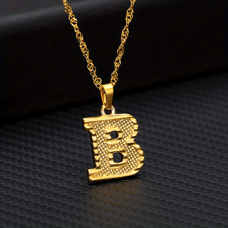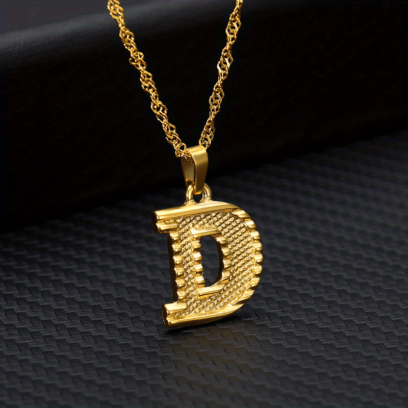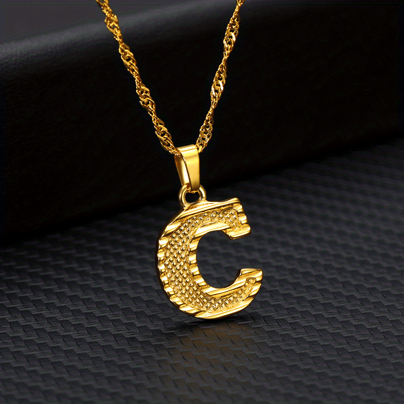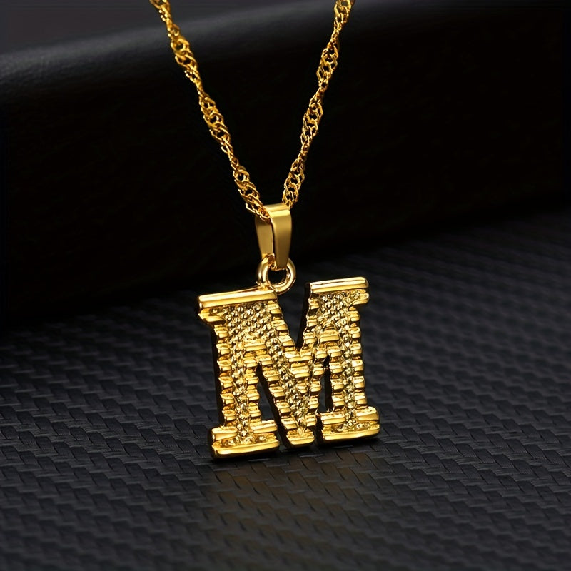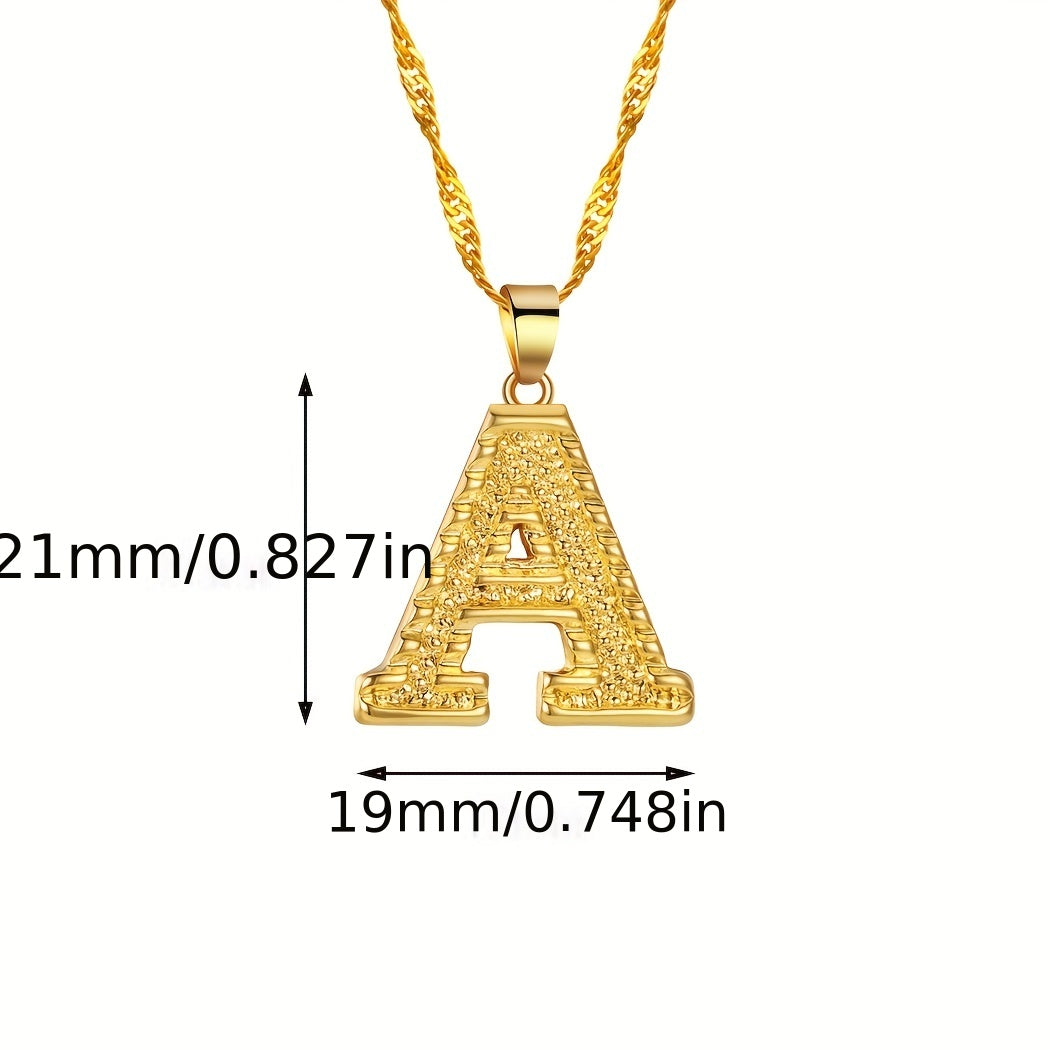 This golden pendant necklace features the letter A, making it a stylish accessory. Perfect for everyday wear or special occasions.
