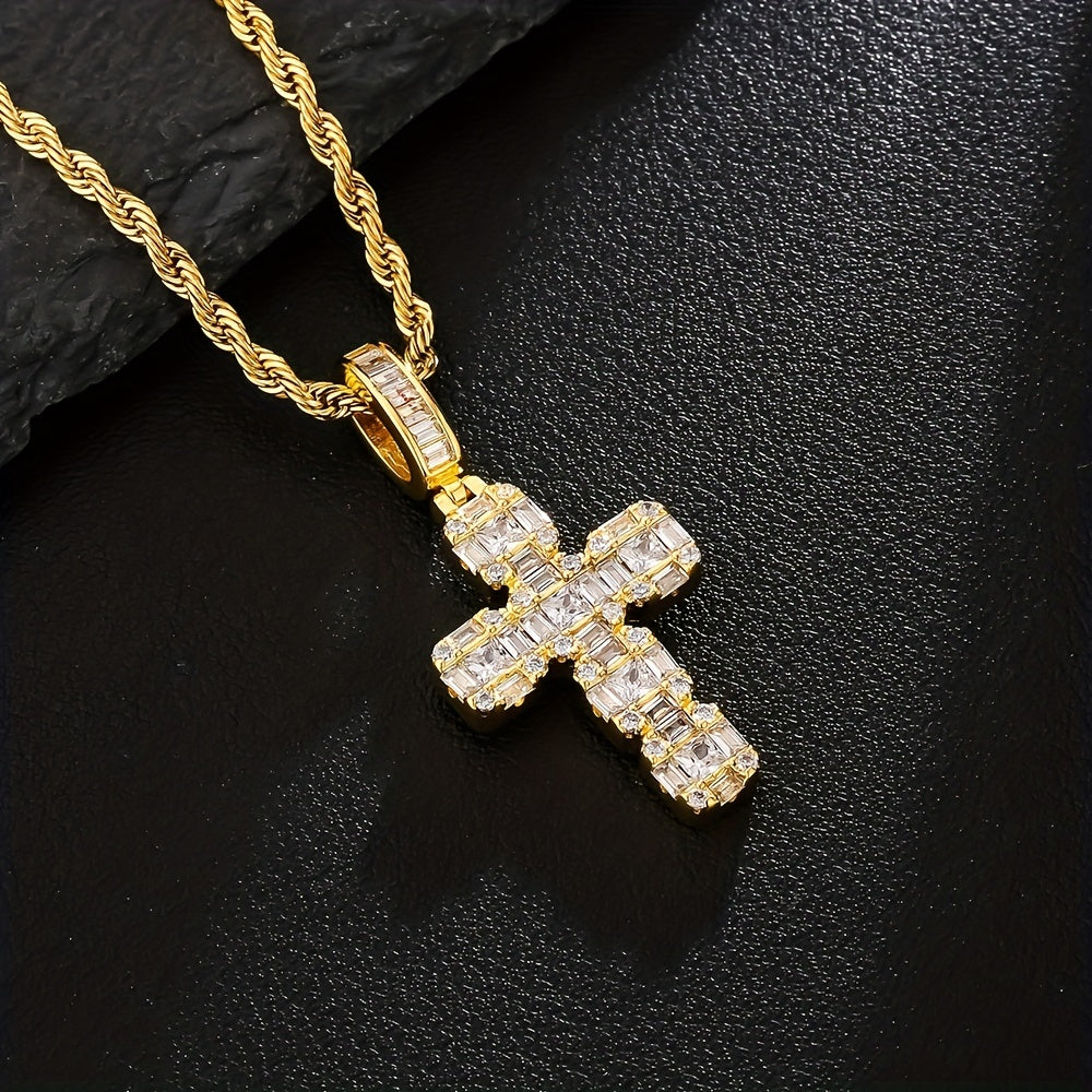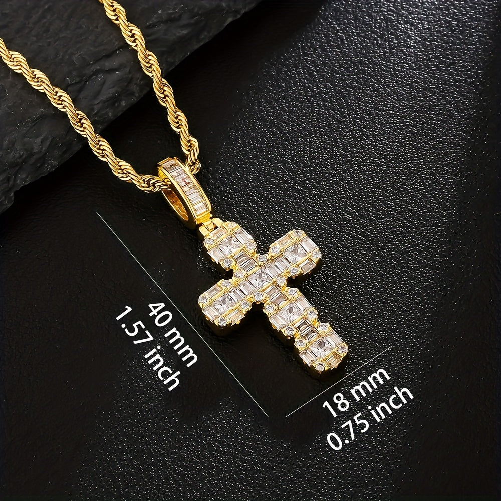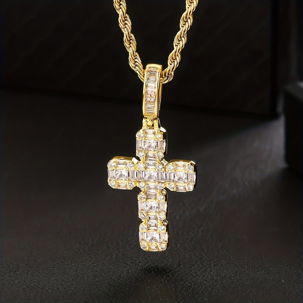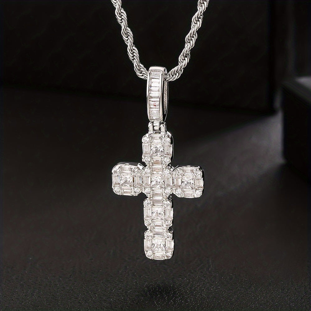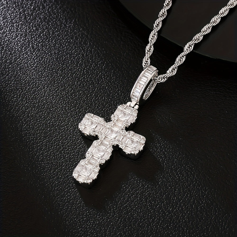 Stand out with this hip hop style square zircon cross necklace. The full zircon design adds a touch of personality to your look.