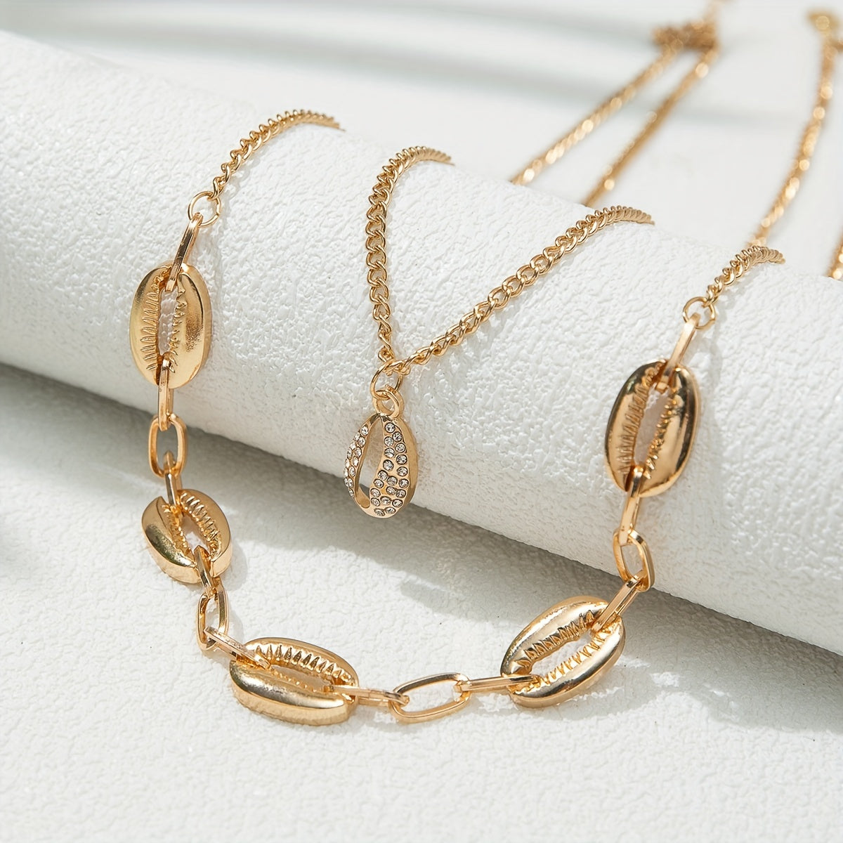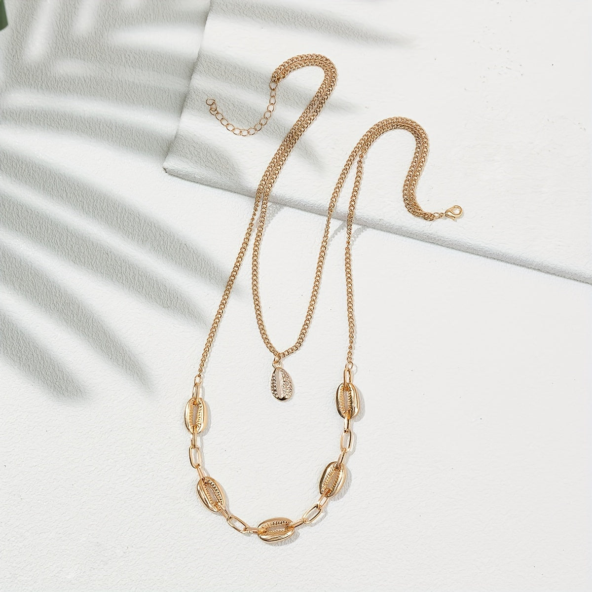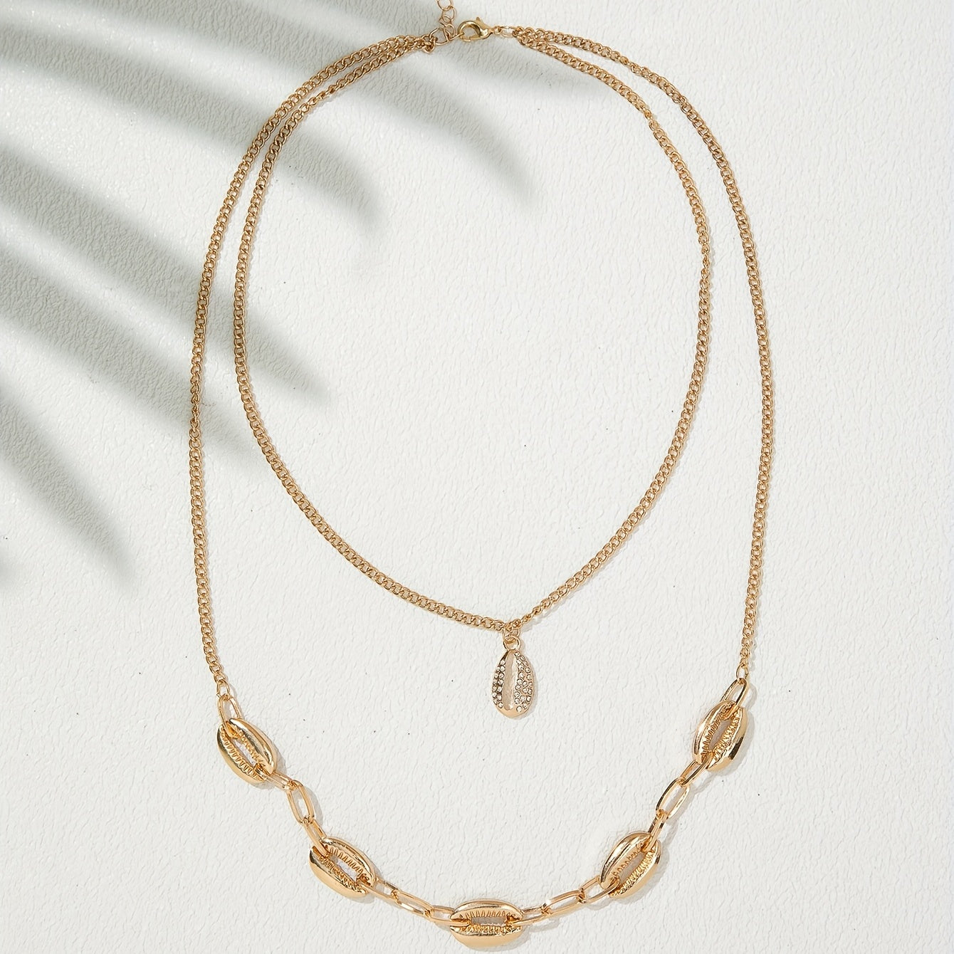 Golden Shell Ocean Alloy Necklace Ethnic Style Multilayer Clavicle Chain Female
