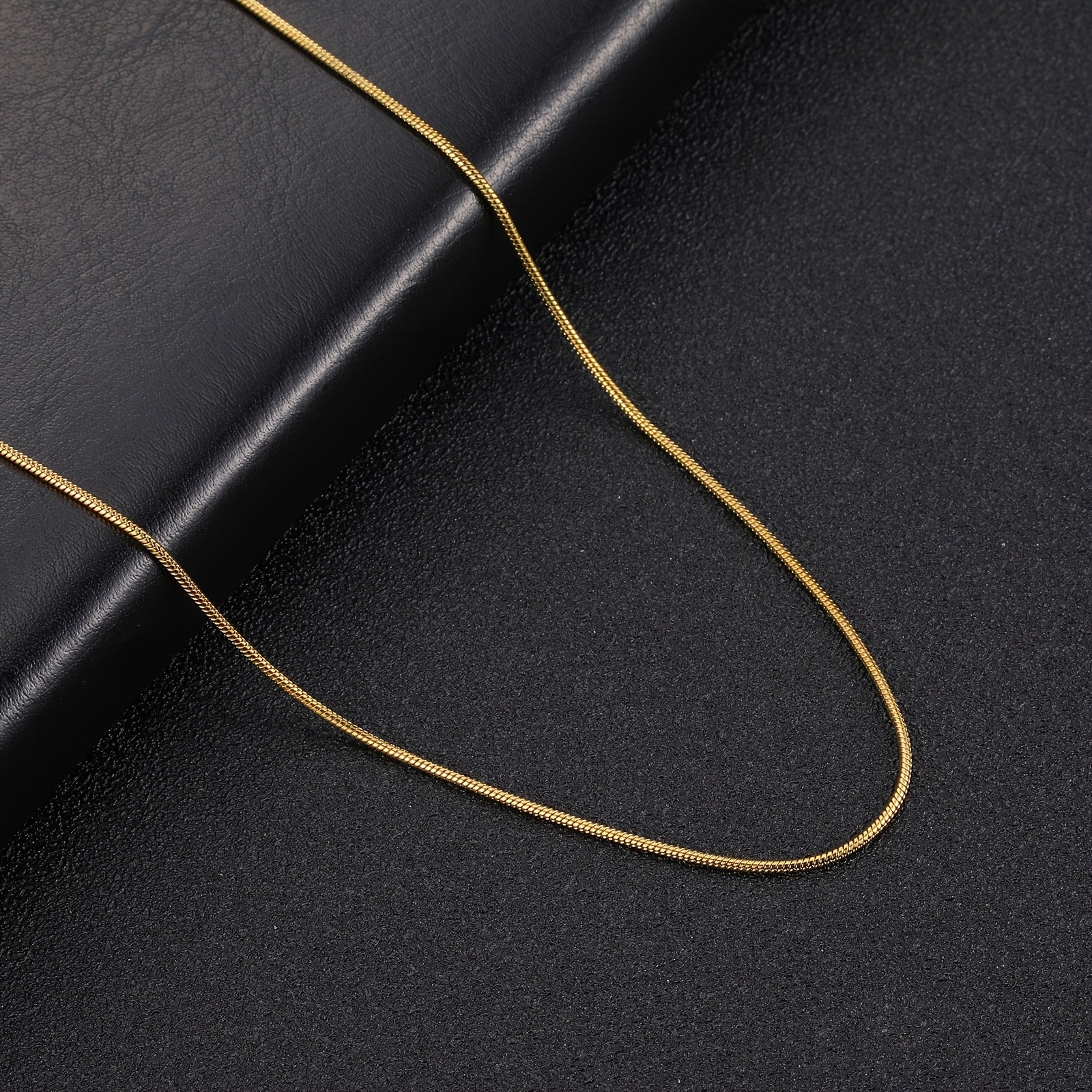 This minimalist necklace is crafted from high-quality stainless steel and features a sleek snake chain design.