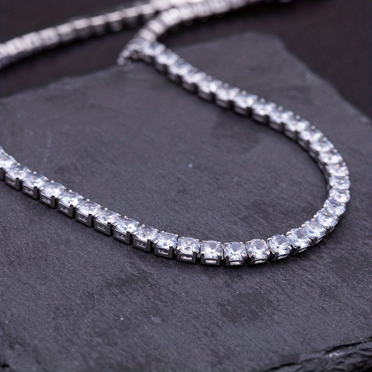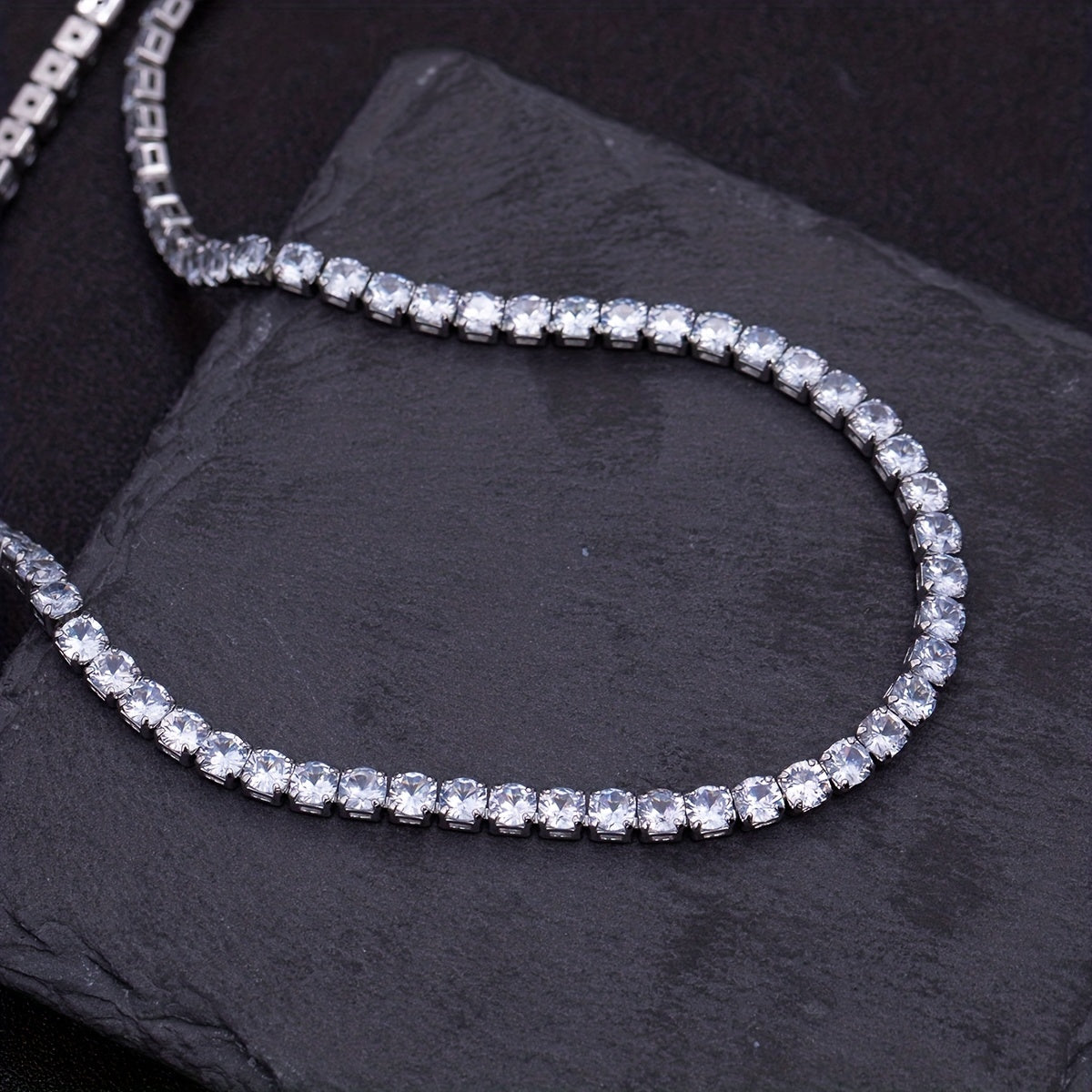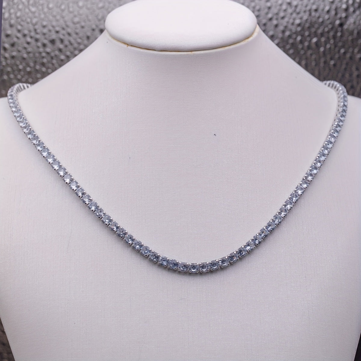 Add a touch of elegance to your outfit with this golden plated zircon chain style necklace. Perfect for special occasions or daily wear.