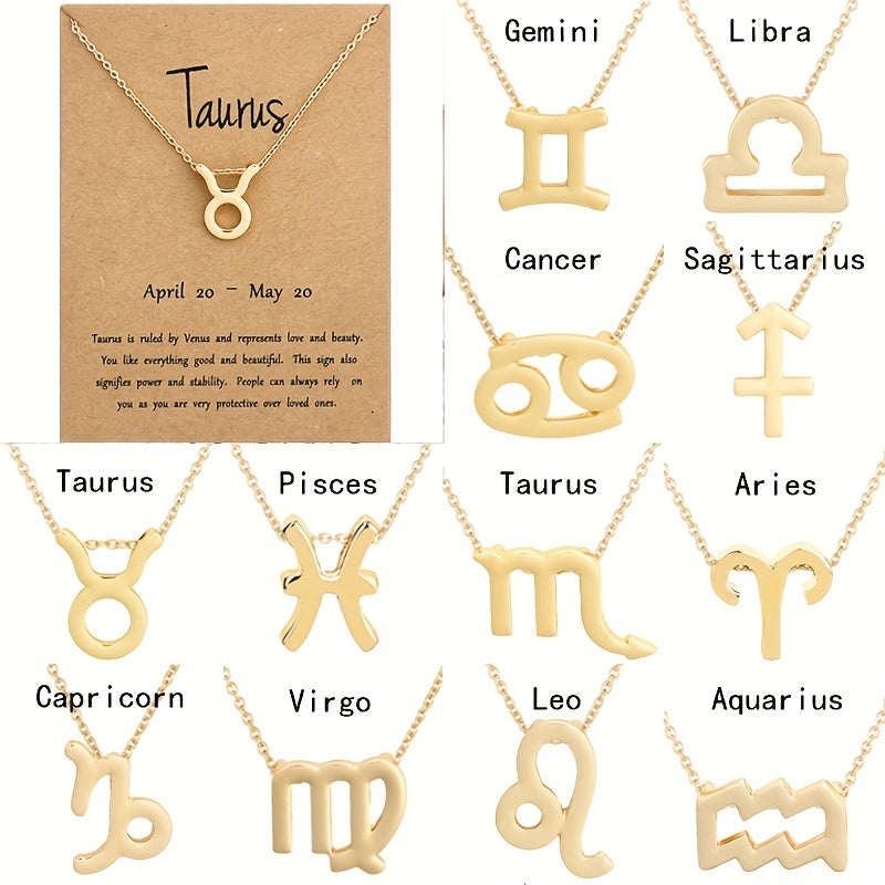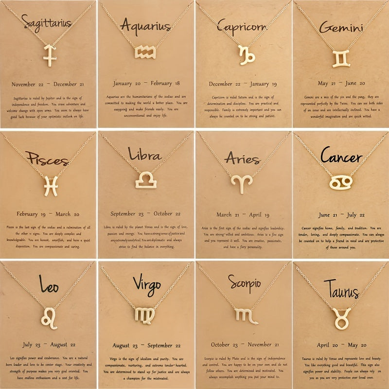 This beautiful necklace features a golden pendant with a Zodiac symbol on a cross border Constellation paper card. The perfect accessory for astrology lovers!