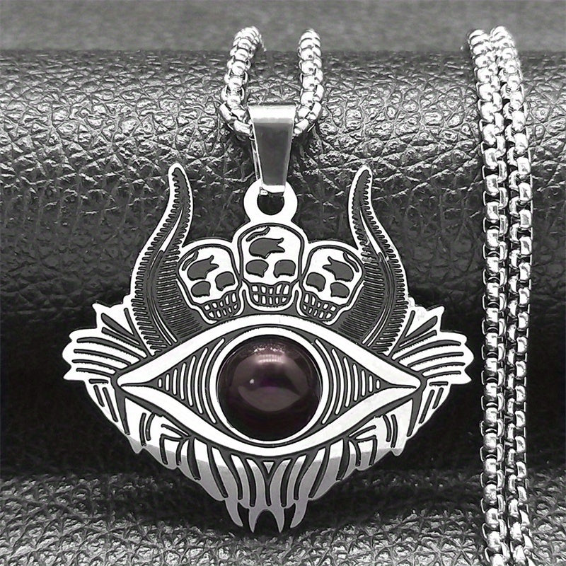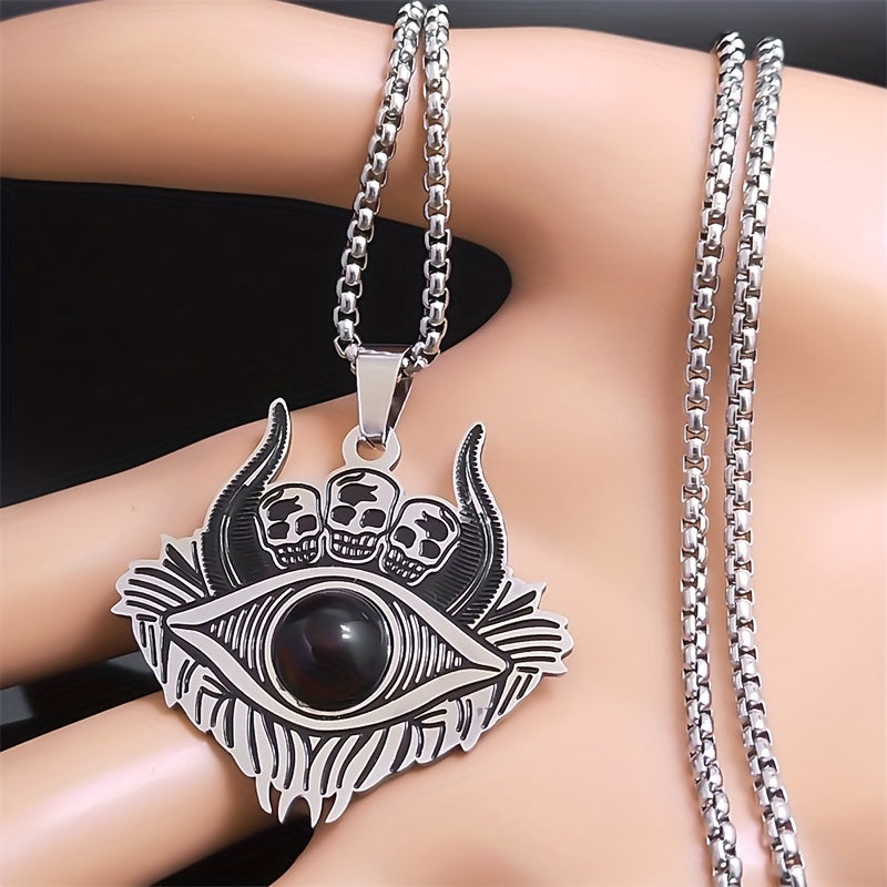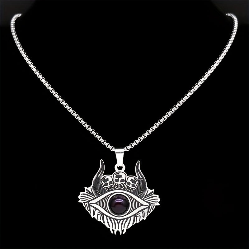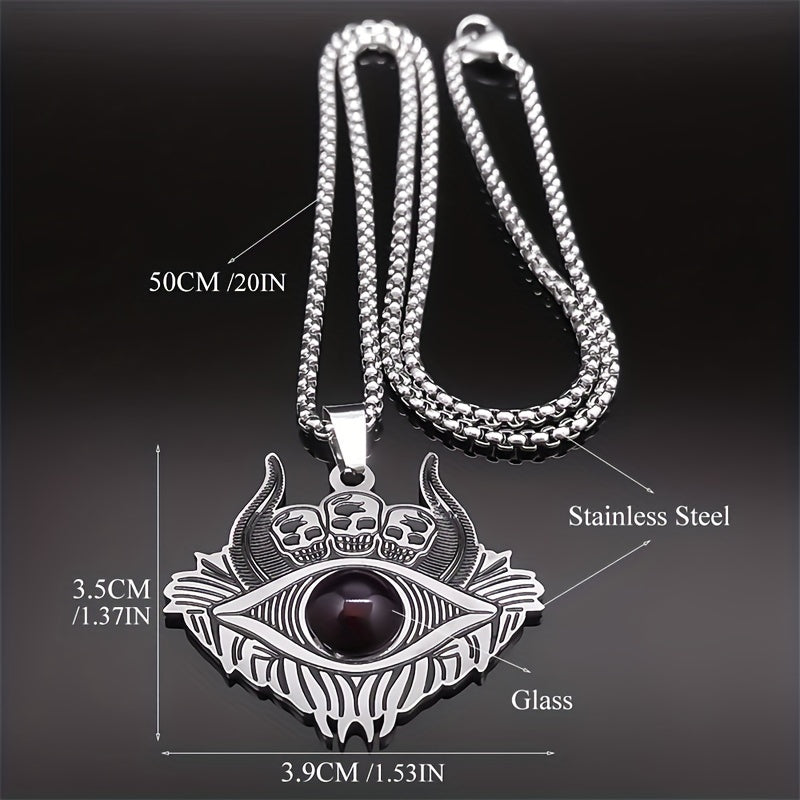This necklace features a gothic skull devil eye design with a vintage goat head pendant. Made of red stainless steel, it is the perfect accessory for men with a unique style.