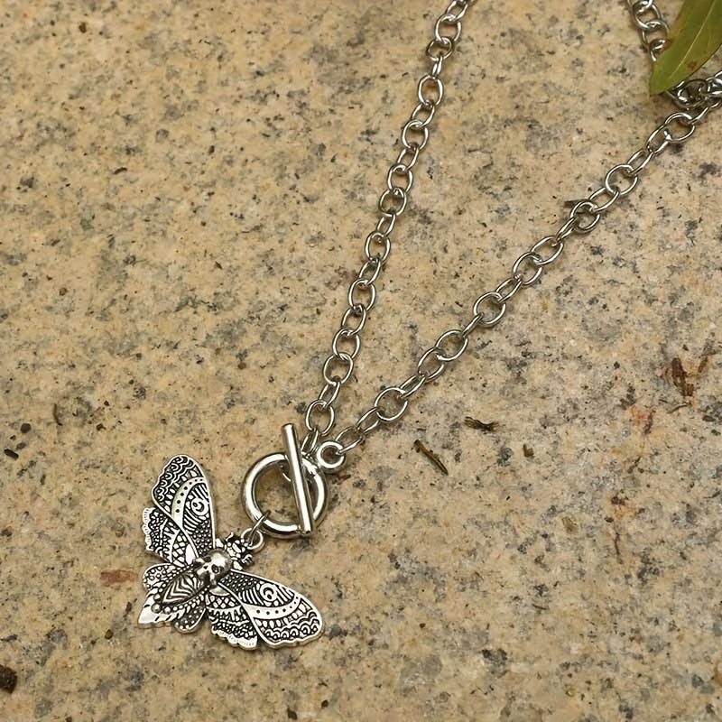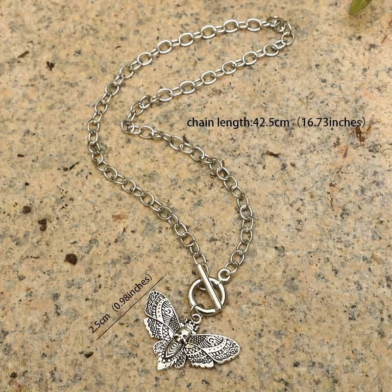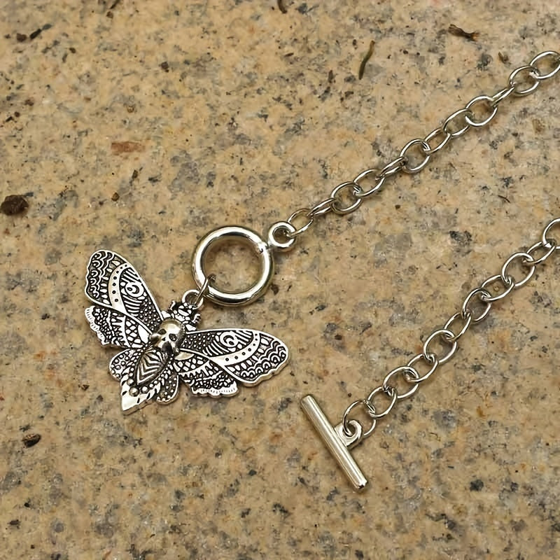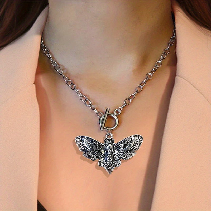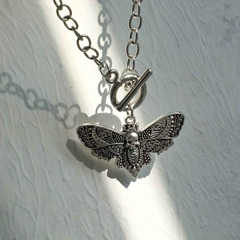 Make a bold statement with this gothic chain pendant necklace featuring a skull and moth design. Perfect for parties and adding edgy style to your look.
