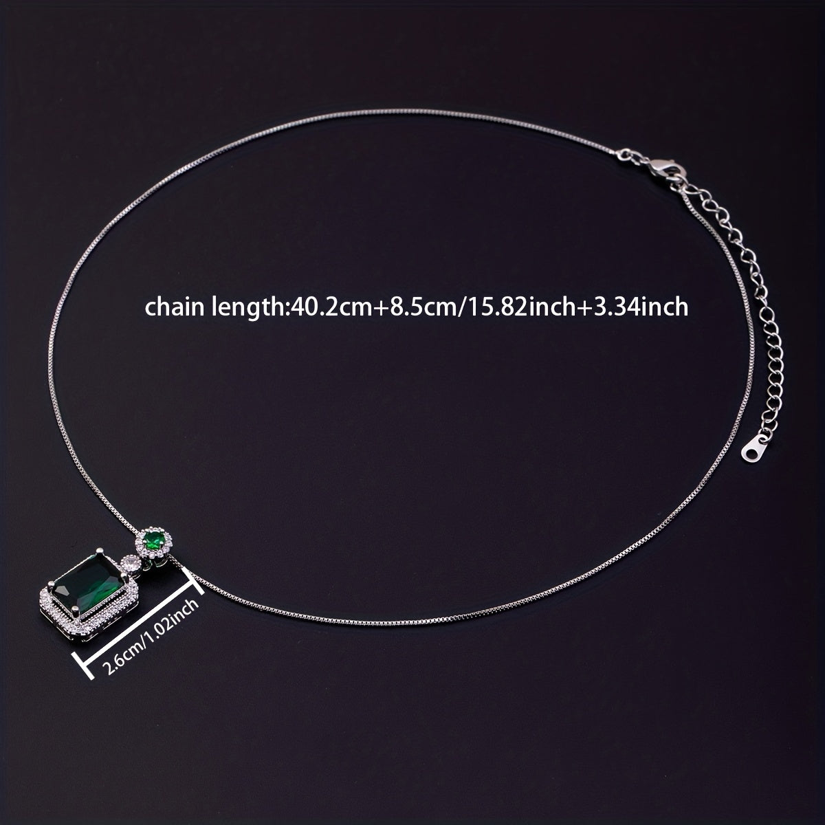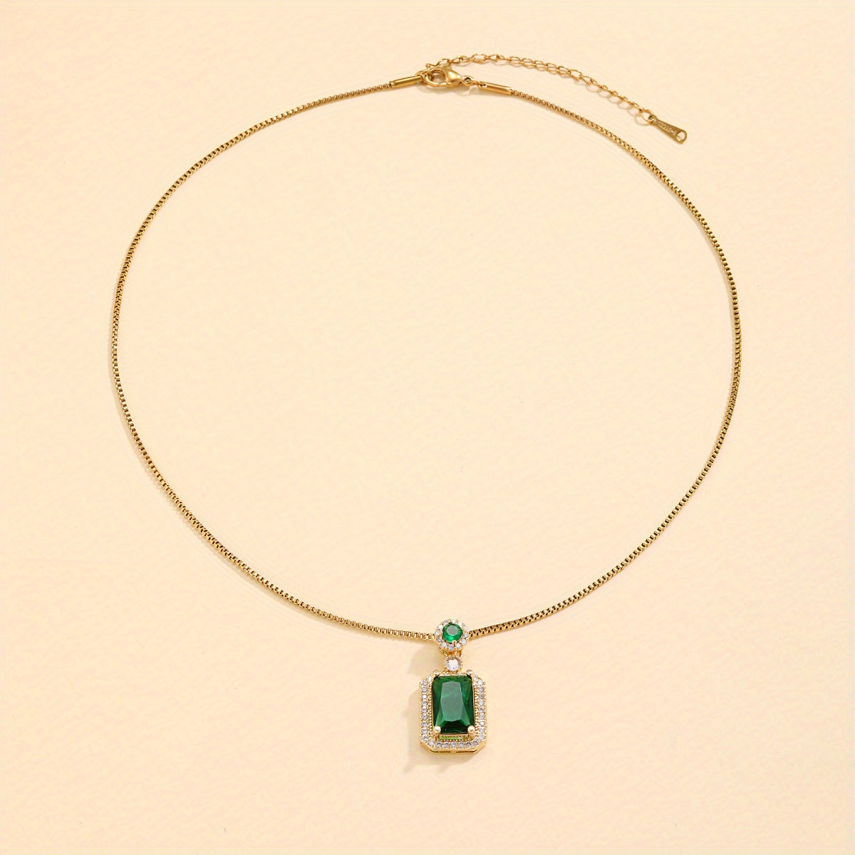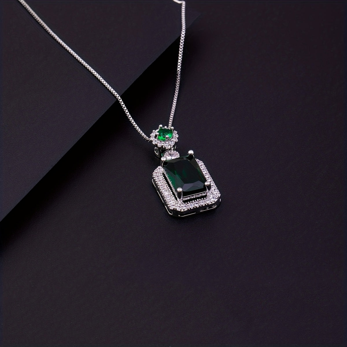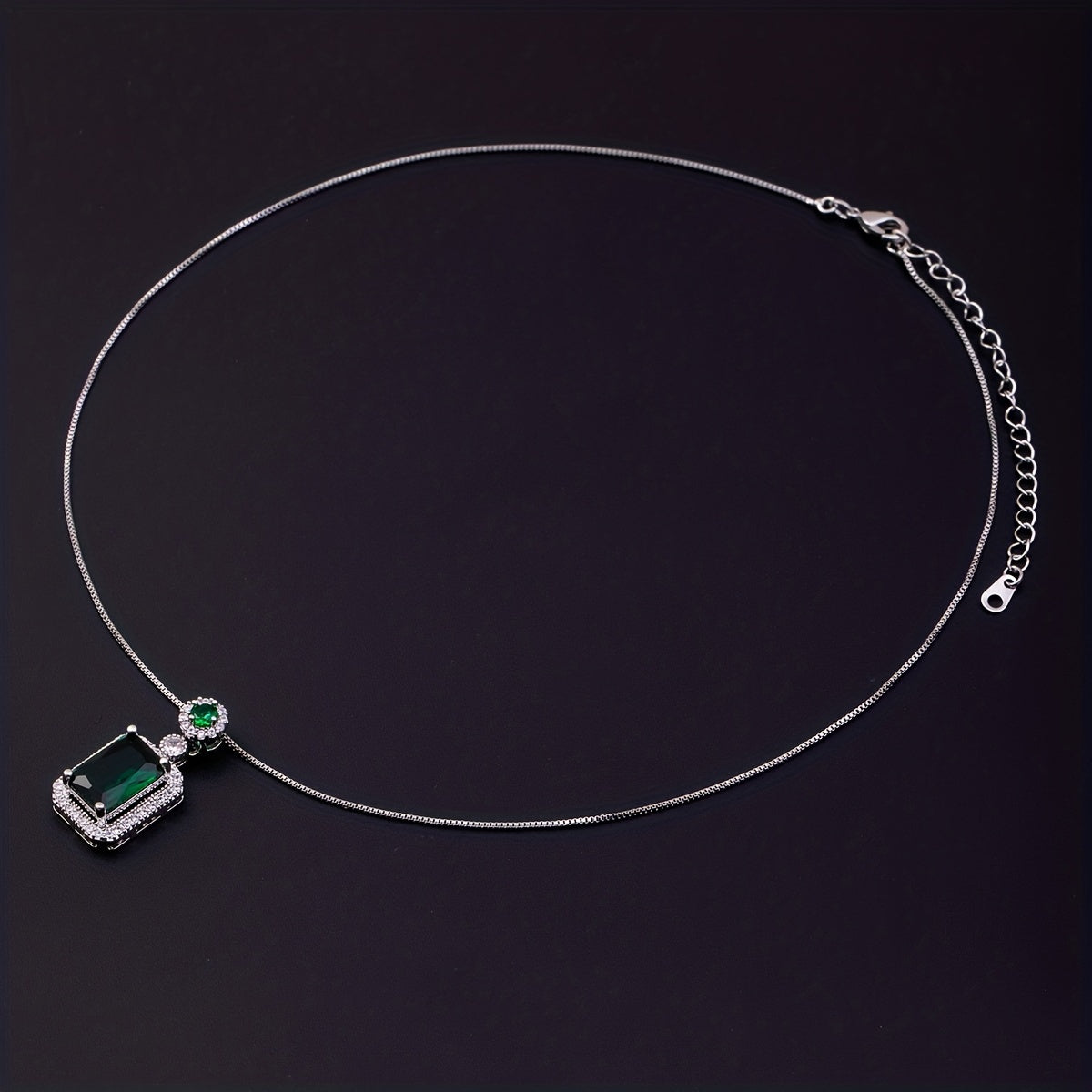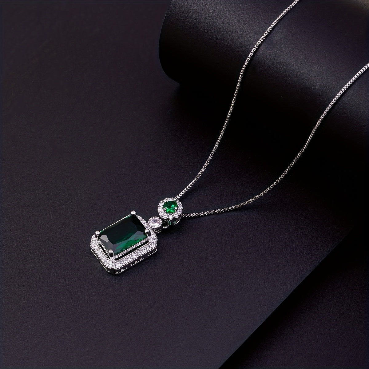 Green Zircon Pendant Necklace Square Artificial Diamond Zirconia