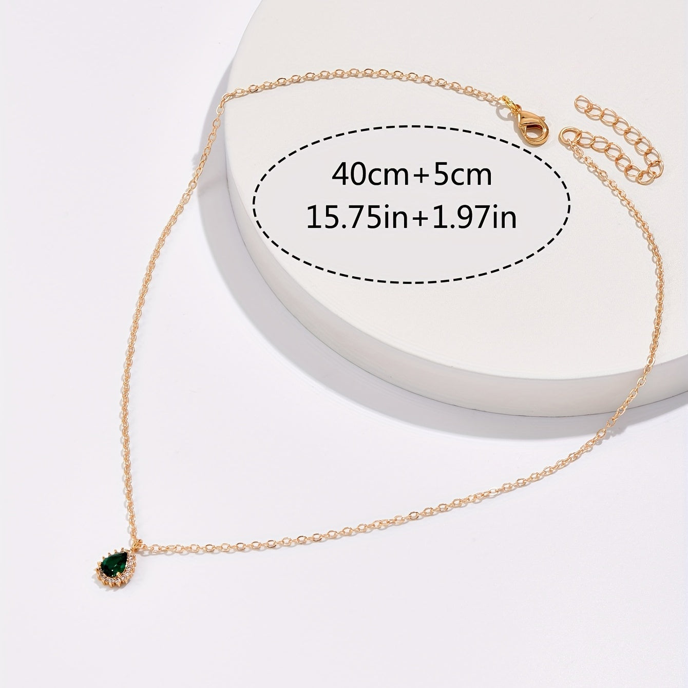 Elegant and dainty, this necklace features a delicate green teardrop-shaped zircon pendant. Perfect for adding a touch of style to any outfit.