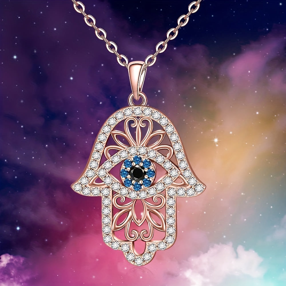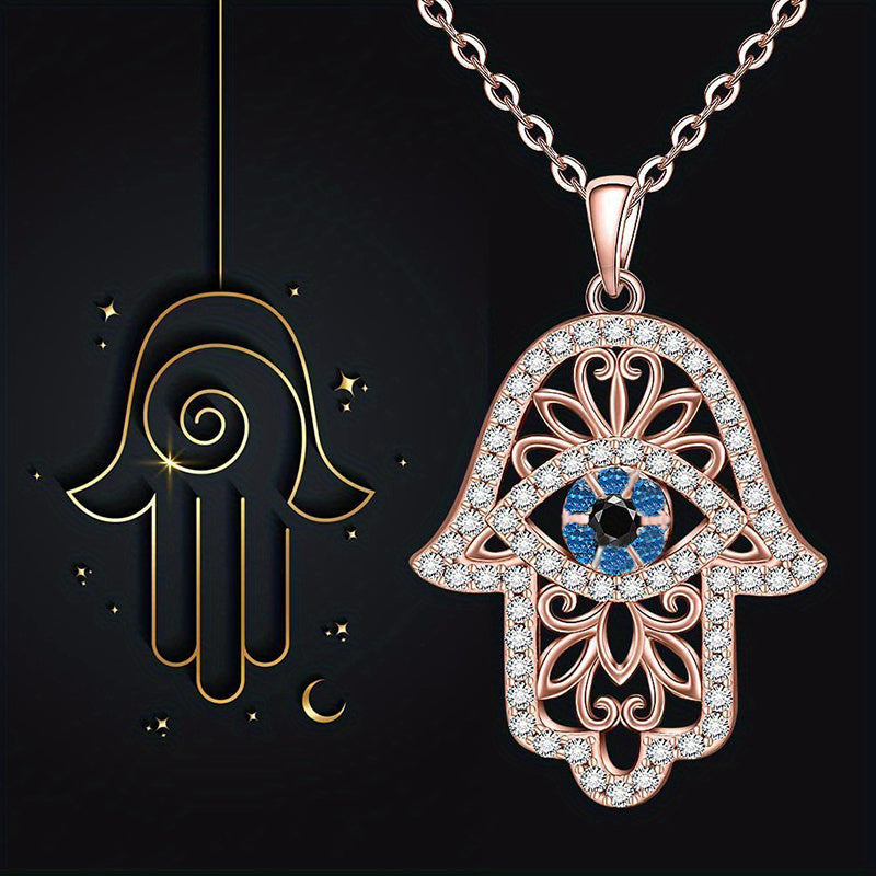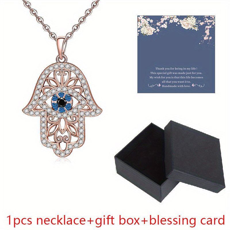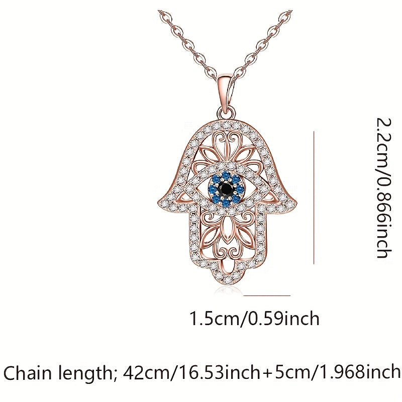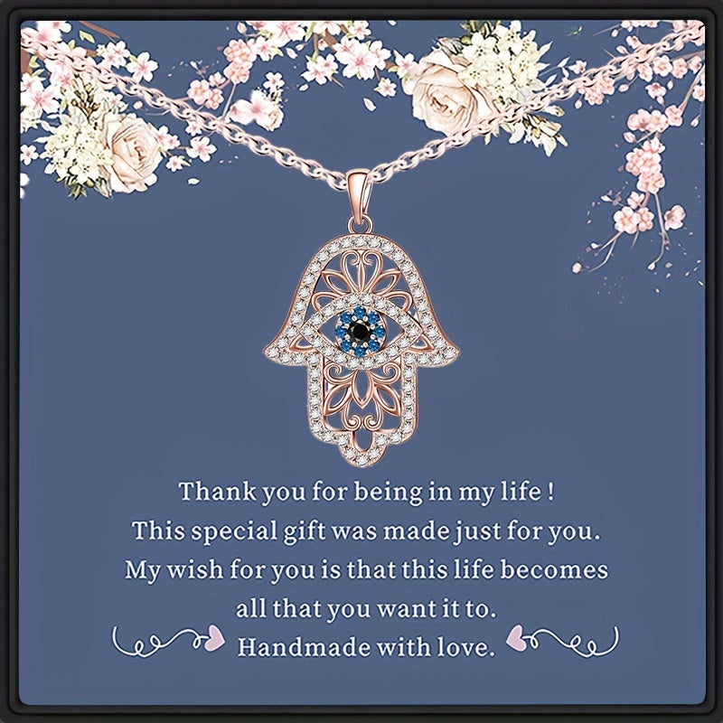 Beautiful rose vintage necklace with Hamsa Hand and Evil Eye pendant. Comes with blessing card.