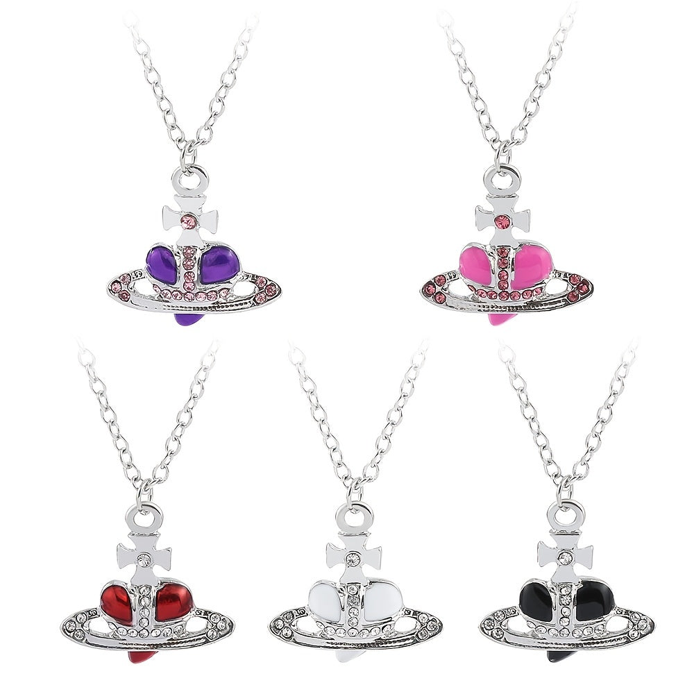 This long pendant necklace features a heart-shaped rhinestone pendant for a vintage punk goth look.