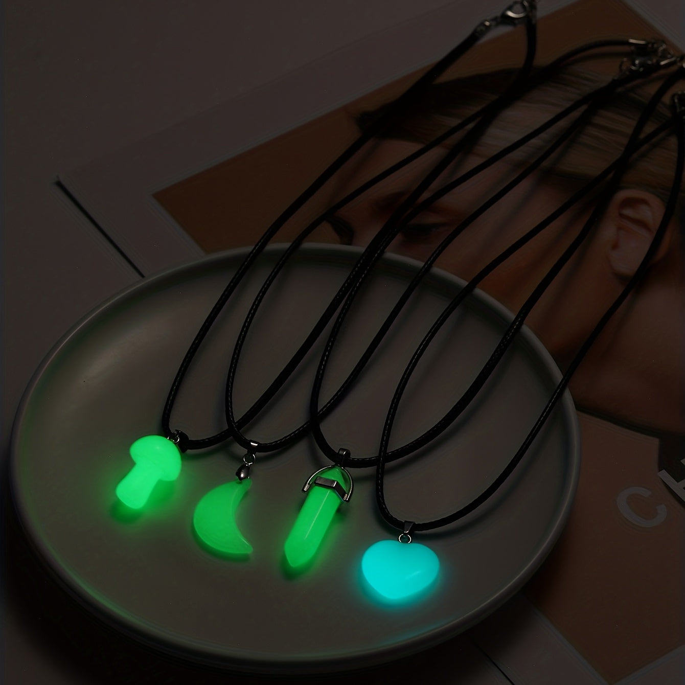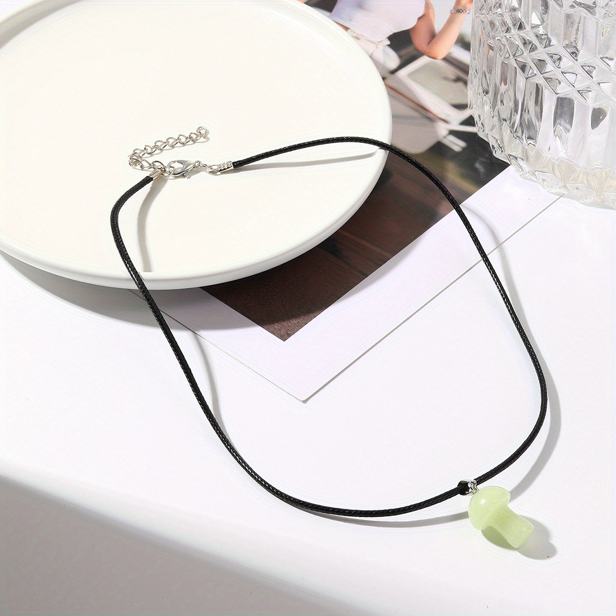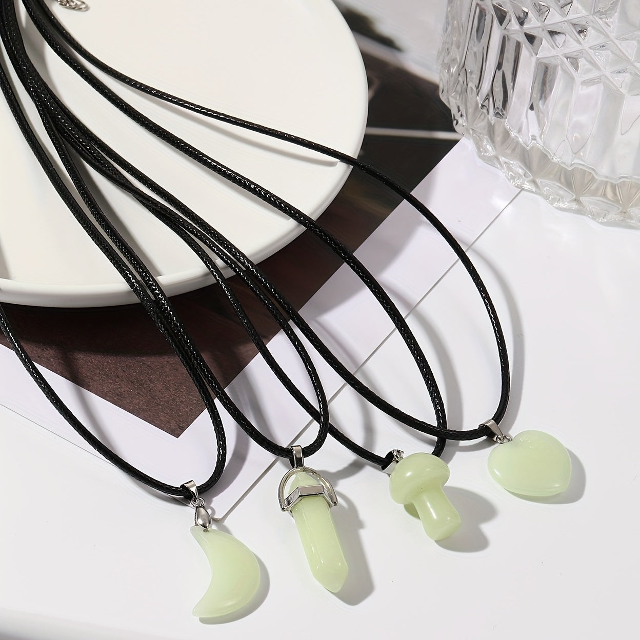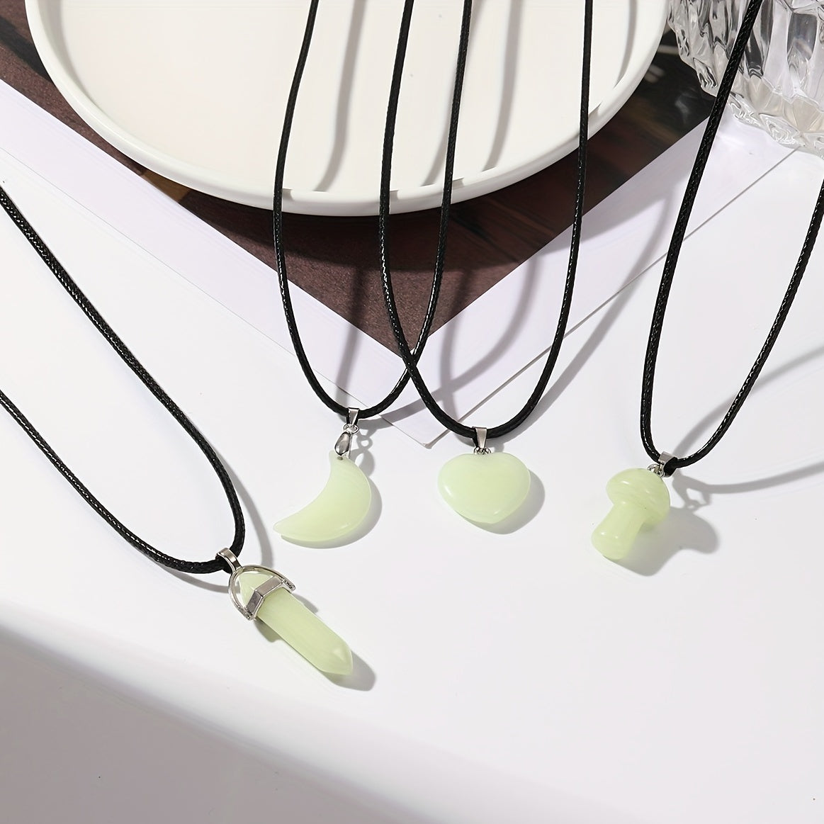 This pendant necklace features a heart, mushroom, and moon design, suitable for both men and women.