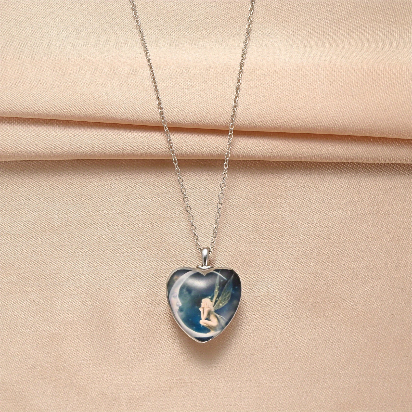 Heart Pendant Crystal Moon Elf Necklace for Men Women or Party