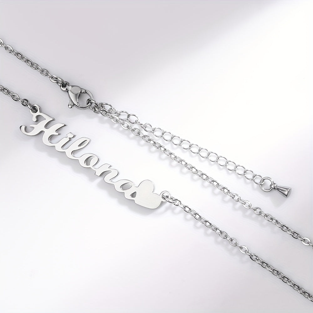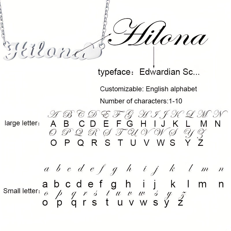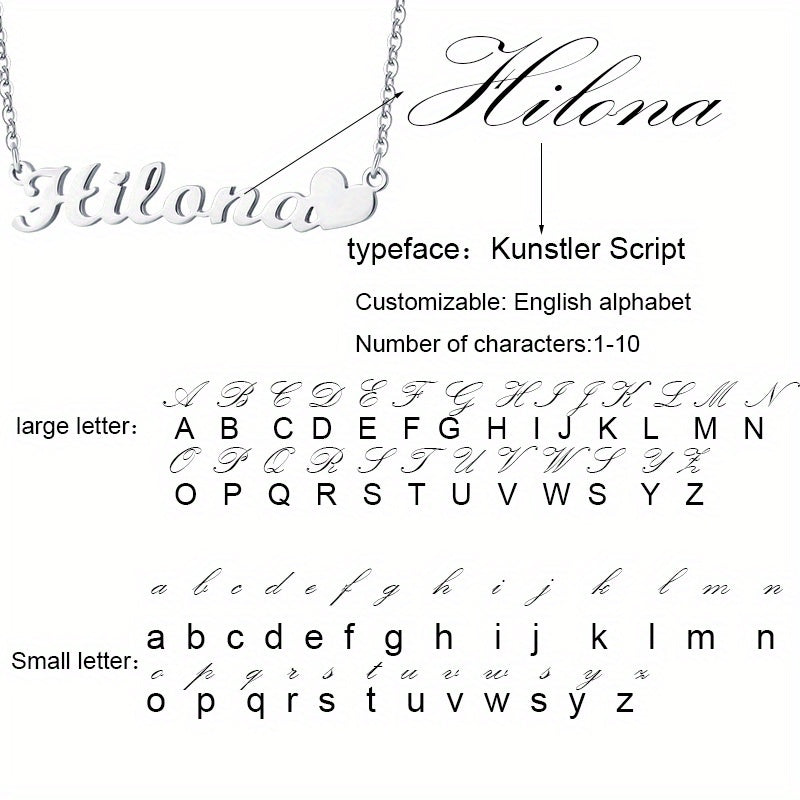 Heart Pendant English Alphabet Name Necklace Customized 5 Fonts Optional
