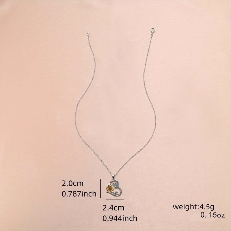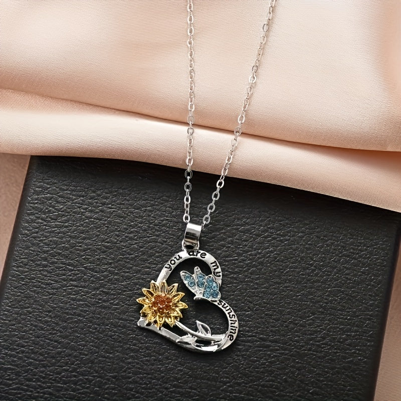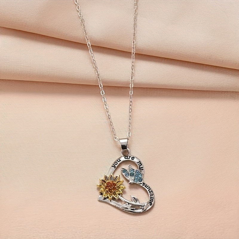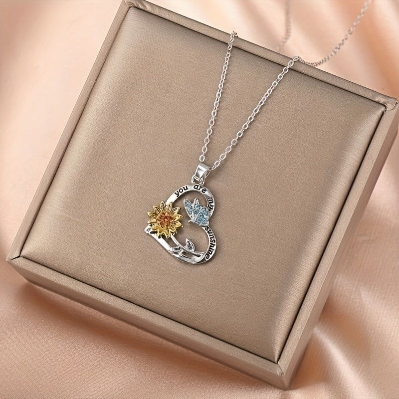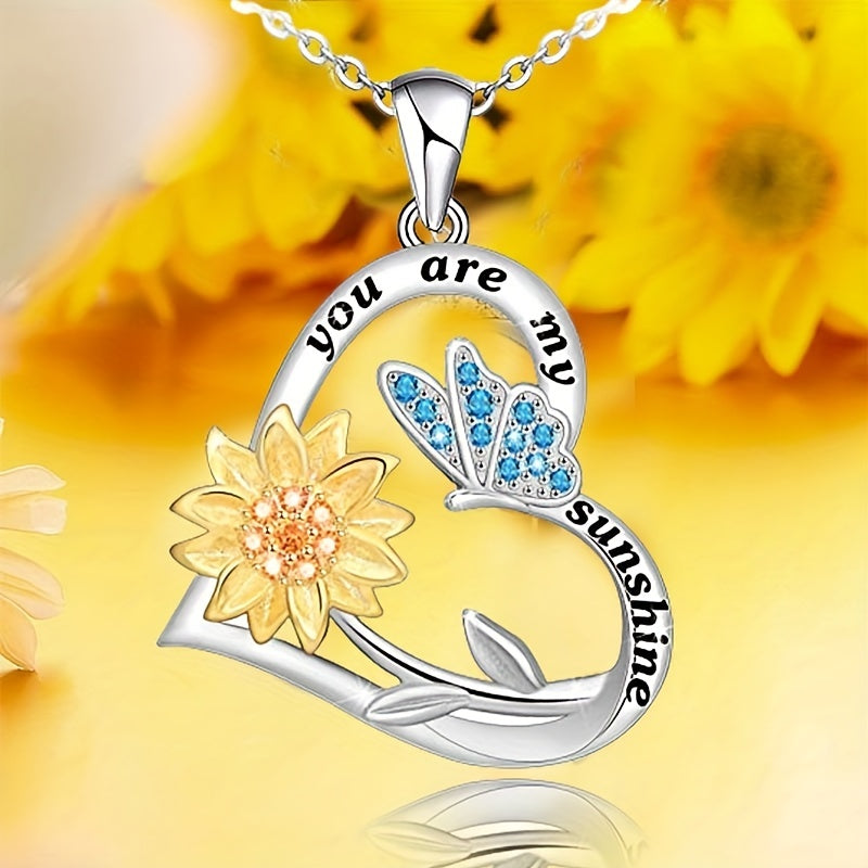 This heart pendant necklace features a butterfly and sun flower design, making it a perfect gift for engagement, anniversary, birthday, or any special occasion.
