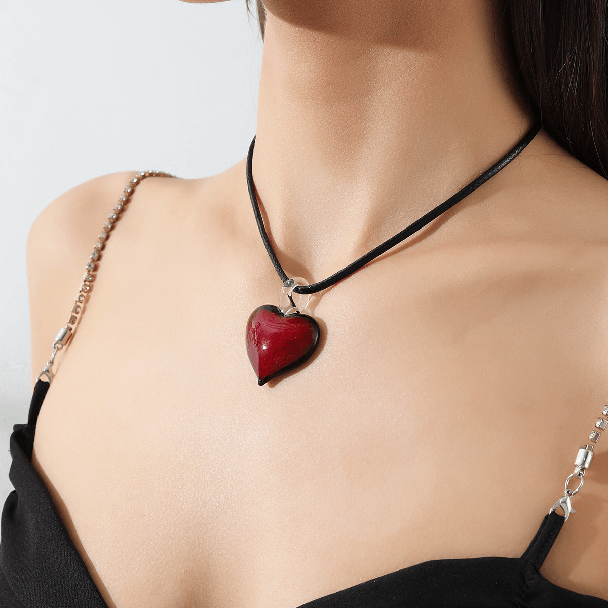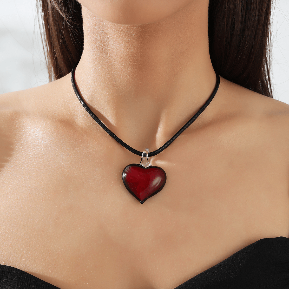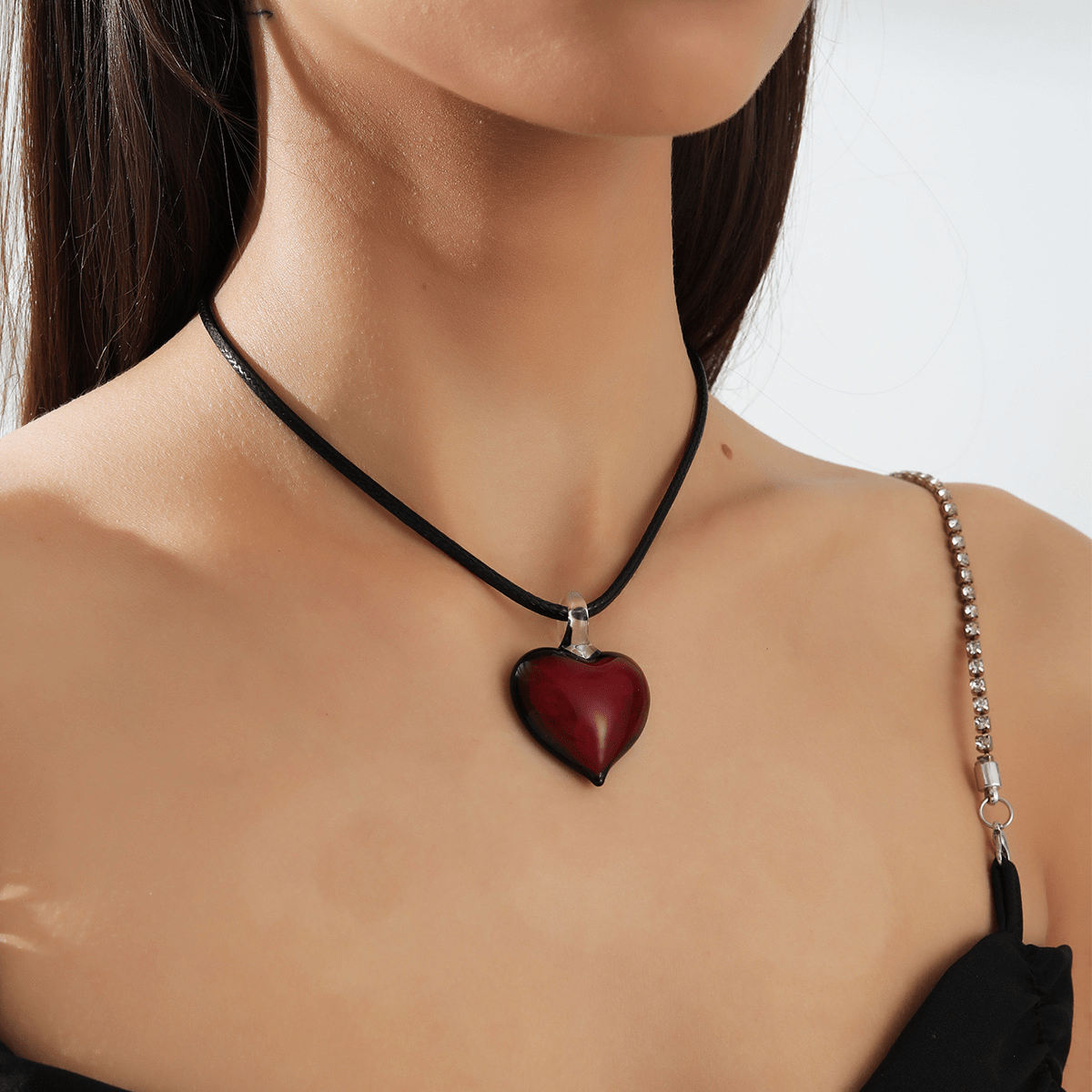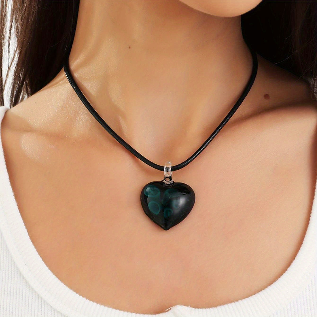 This beautiful heart pendant necklace with glass choker is a romantic accessory perfect for women. It adds an elegant touch to any outfit.